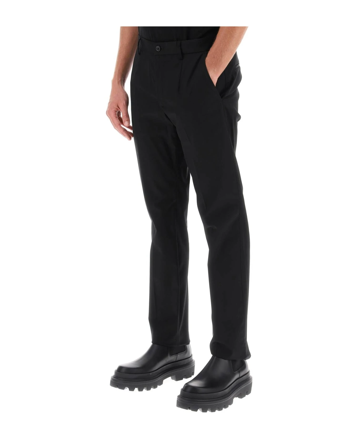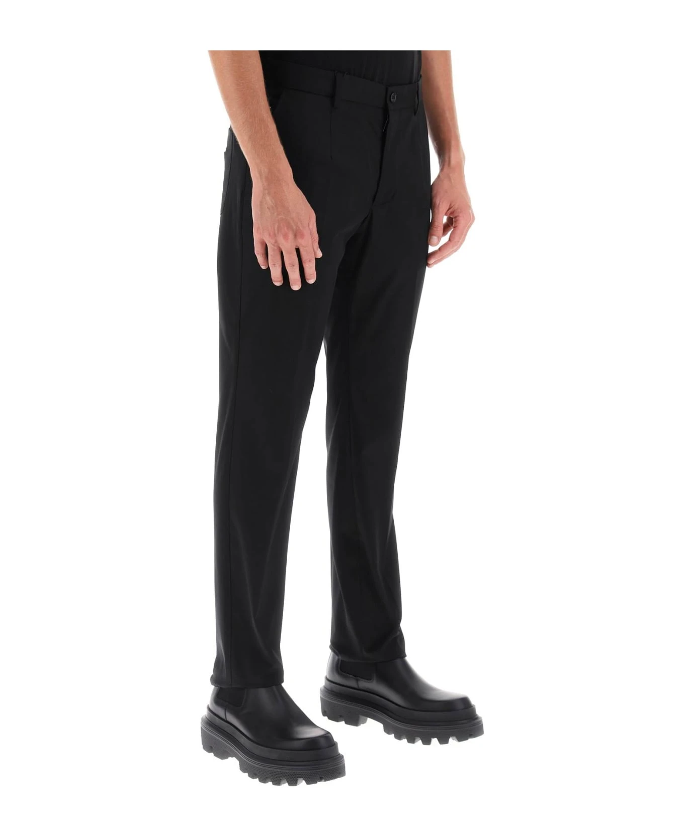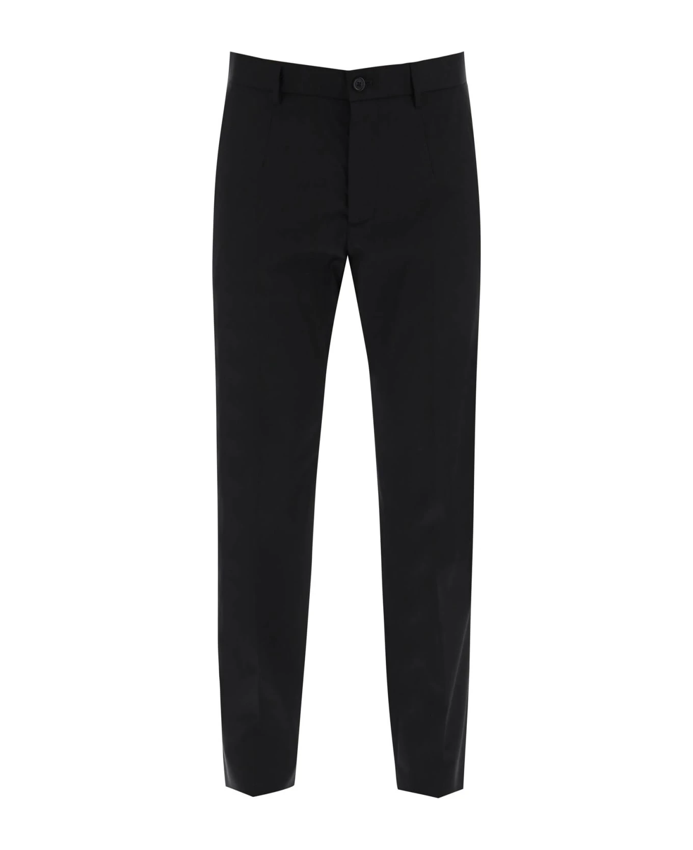 Dolce&Gabbana pants crafted in stretch-cotton twill. They feature front fastening with zipper fly and buttons, side slash pockets, back welt pockets and belt loops. Enriched by a patch pocket with metal logo plaque on the back. Slim fit with cigarette cut enhanced by pressed crease. The model is 187 cm tall and wears size IT 48.
