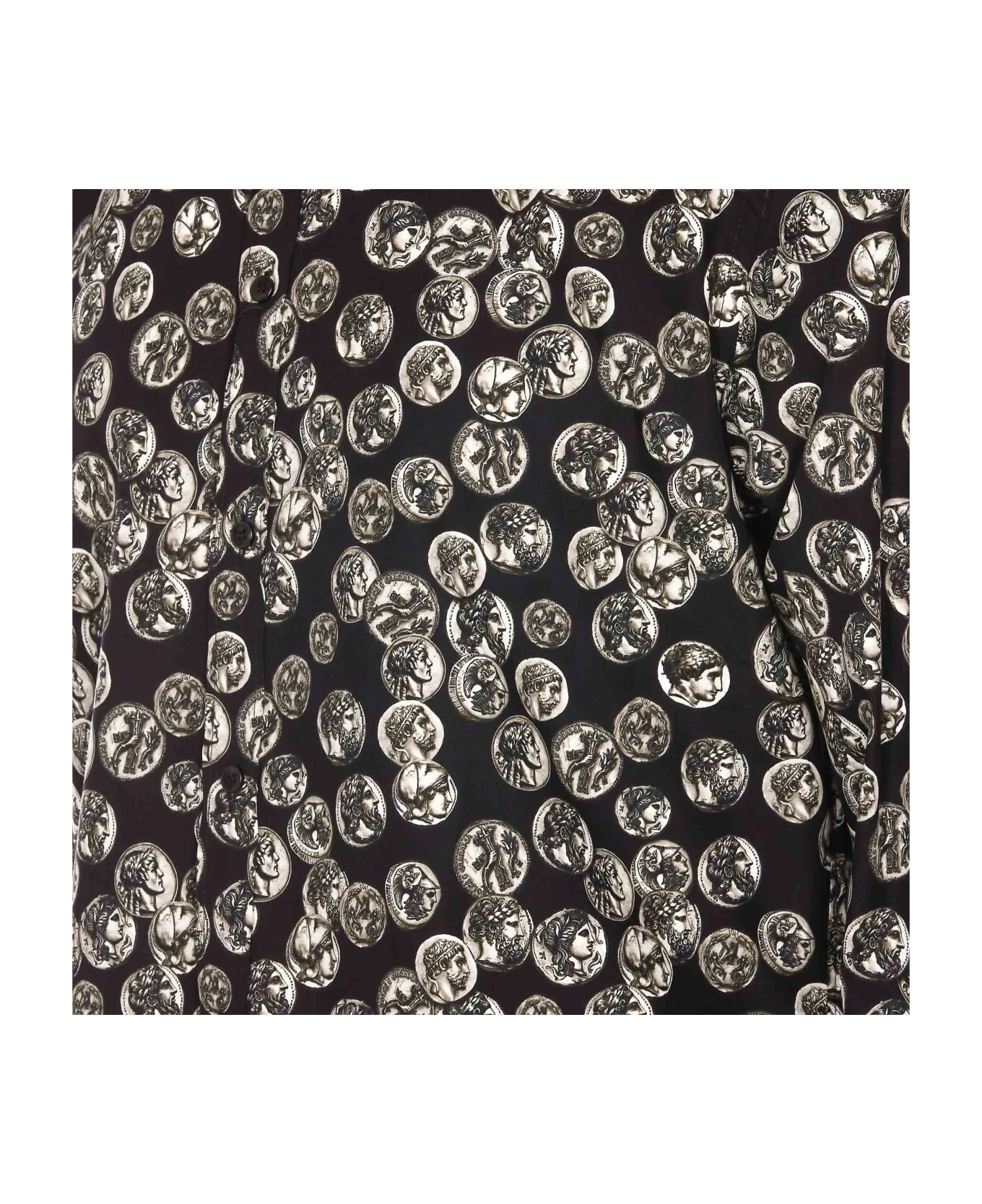 Dolce&Gabbana black shirt with frontal buttons closure, regular collar, all over Coint print, button on cuffs