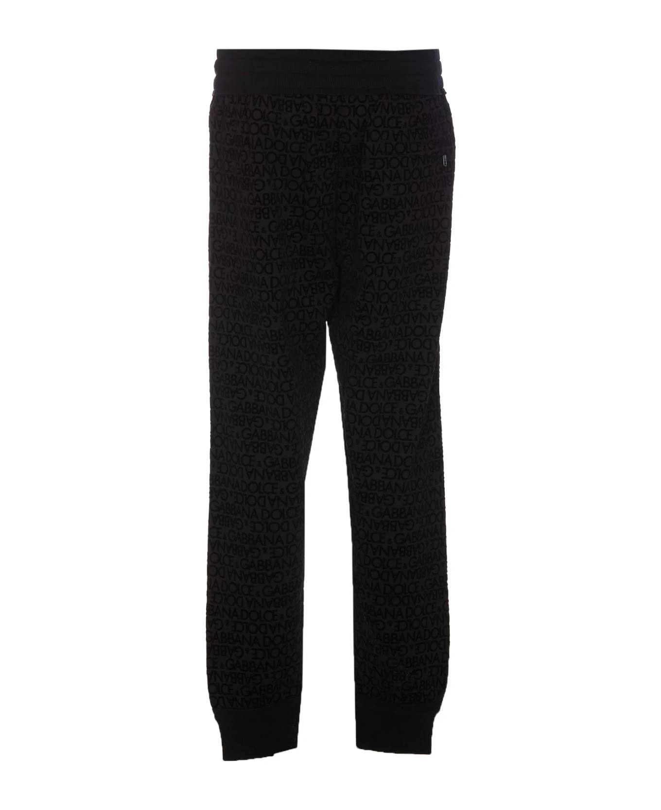 Dolce&gabbana black pants, coulisse closure, lateral pockets, all over print tone on tone logo, elasticized cuffs at bottom, elasticized on waist