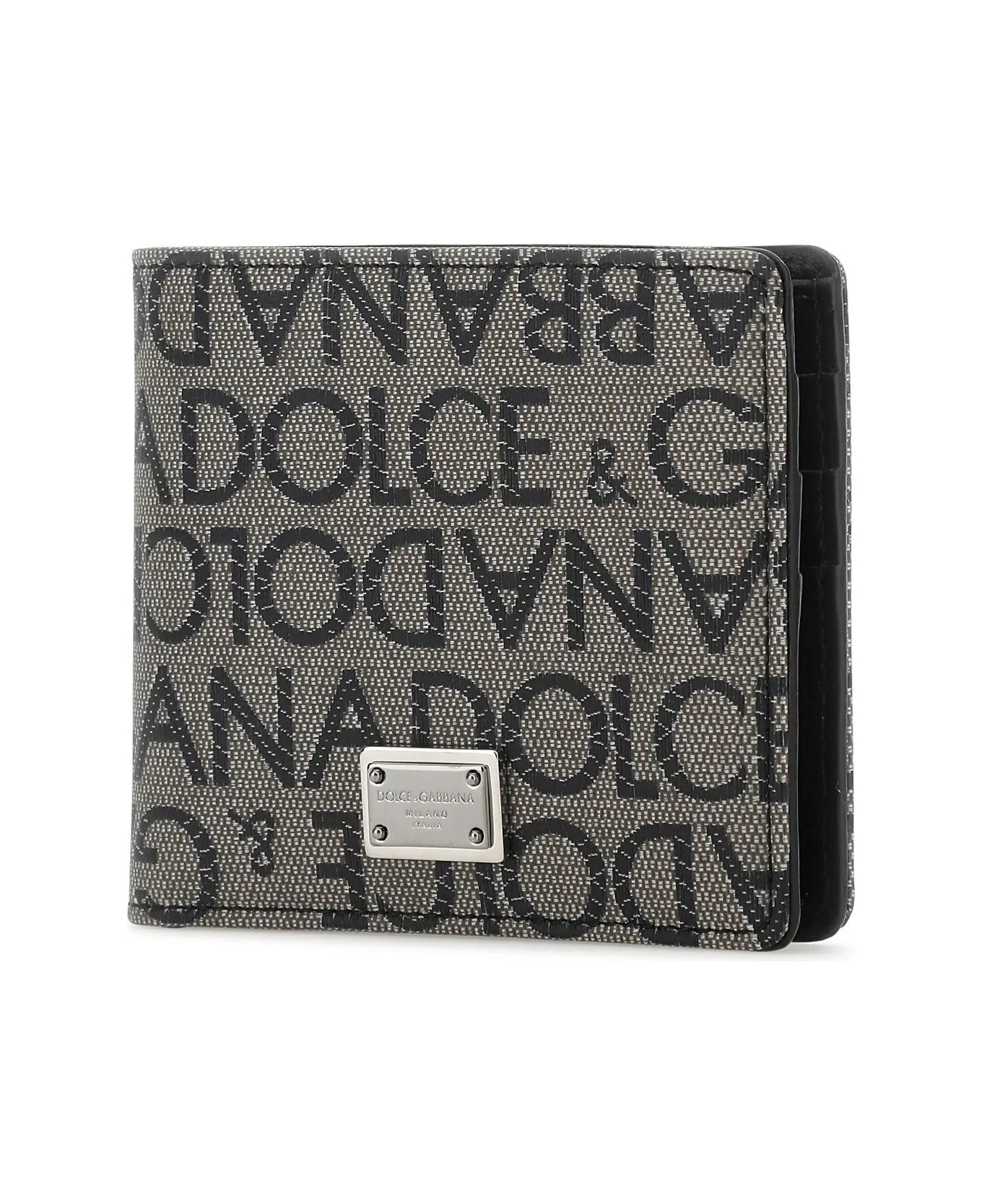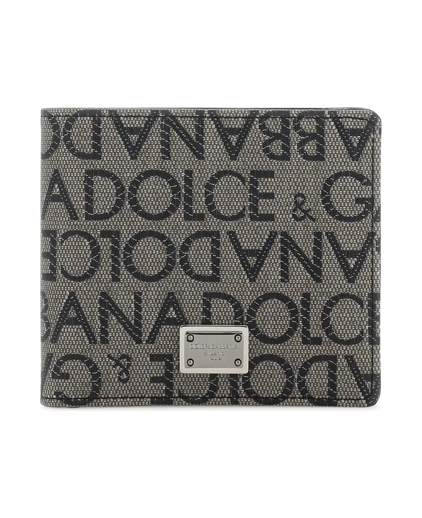 Wallet realized in coated cotton blend characterized by logoed embroidery on the entire surface enriched by logoed plate at the front.