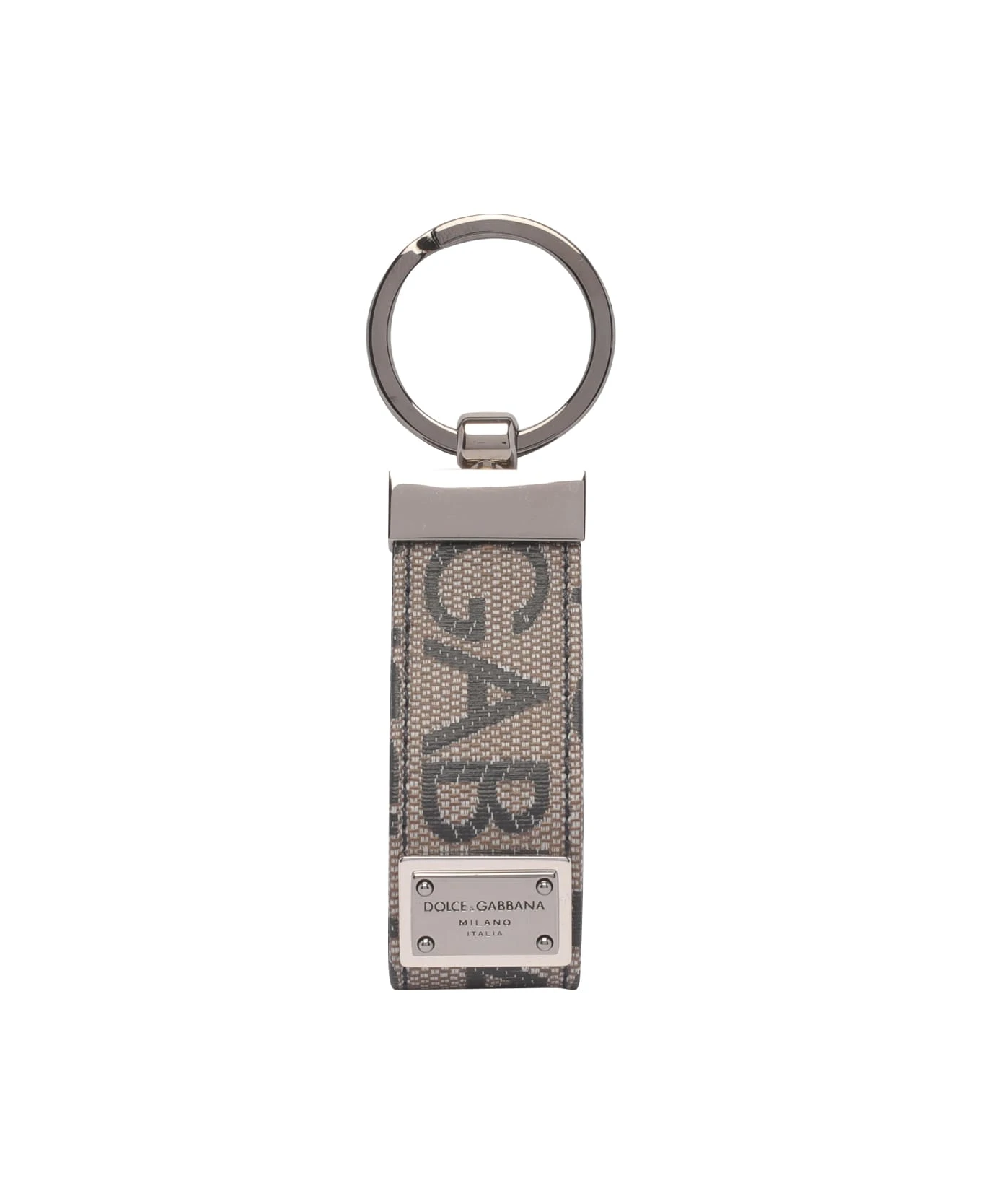Dolce&Gabbana brown Jacquard logo key chain with silver details