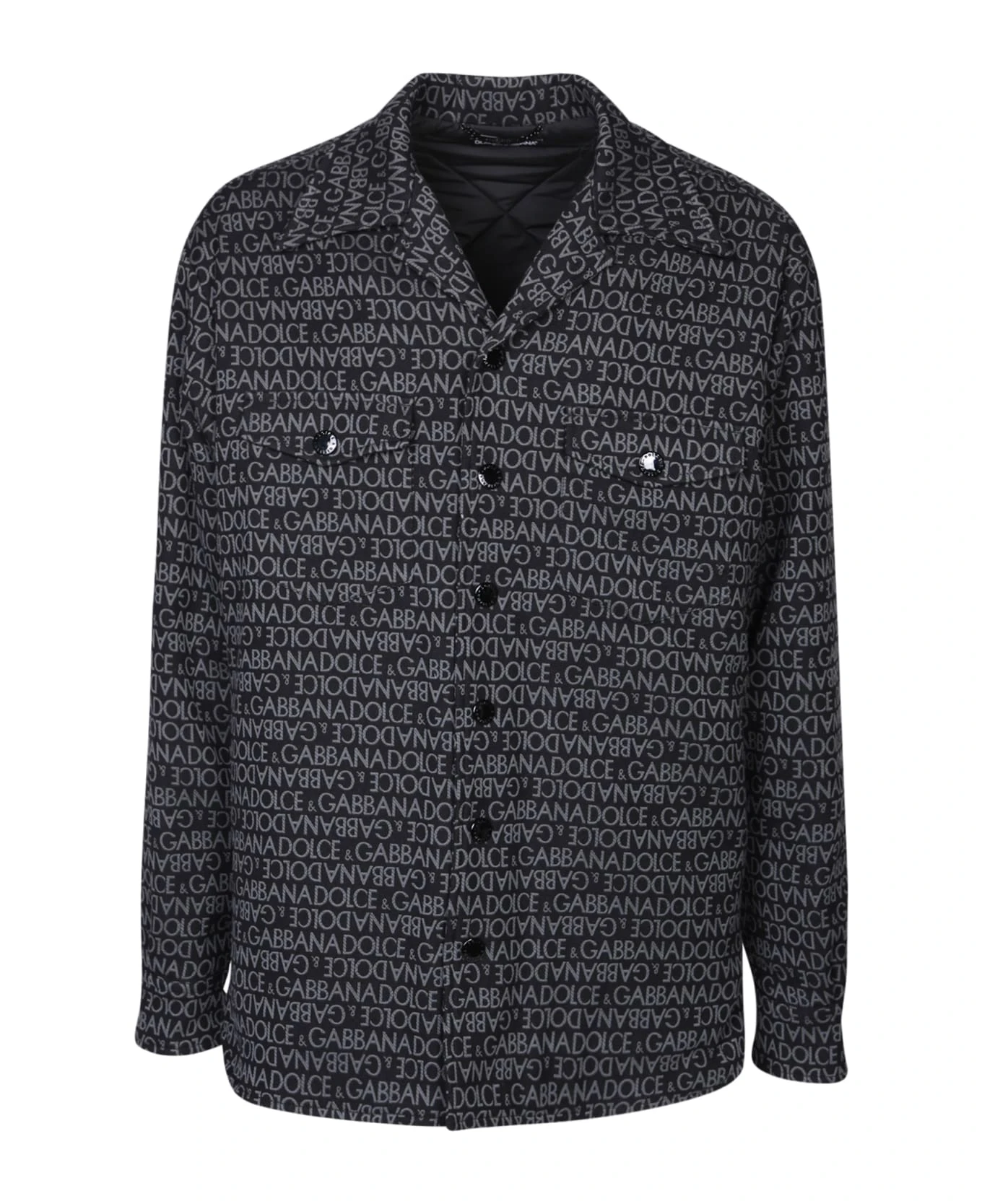Classic neck. Front button fastening. Long sleeves. Buttoned cuffs. Two chest button fastening pockets. All-over logo print. Padded. Regular fit. Color: black/ grey