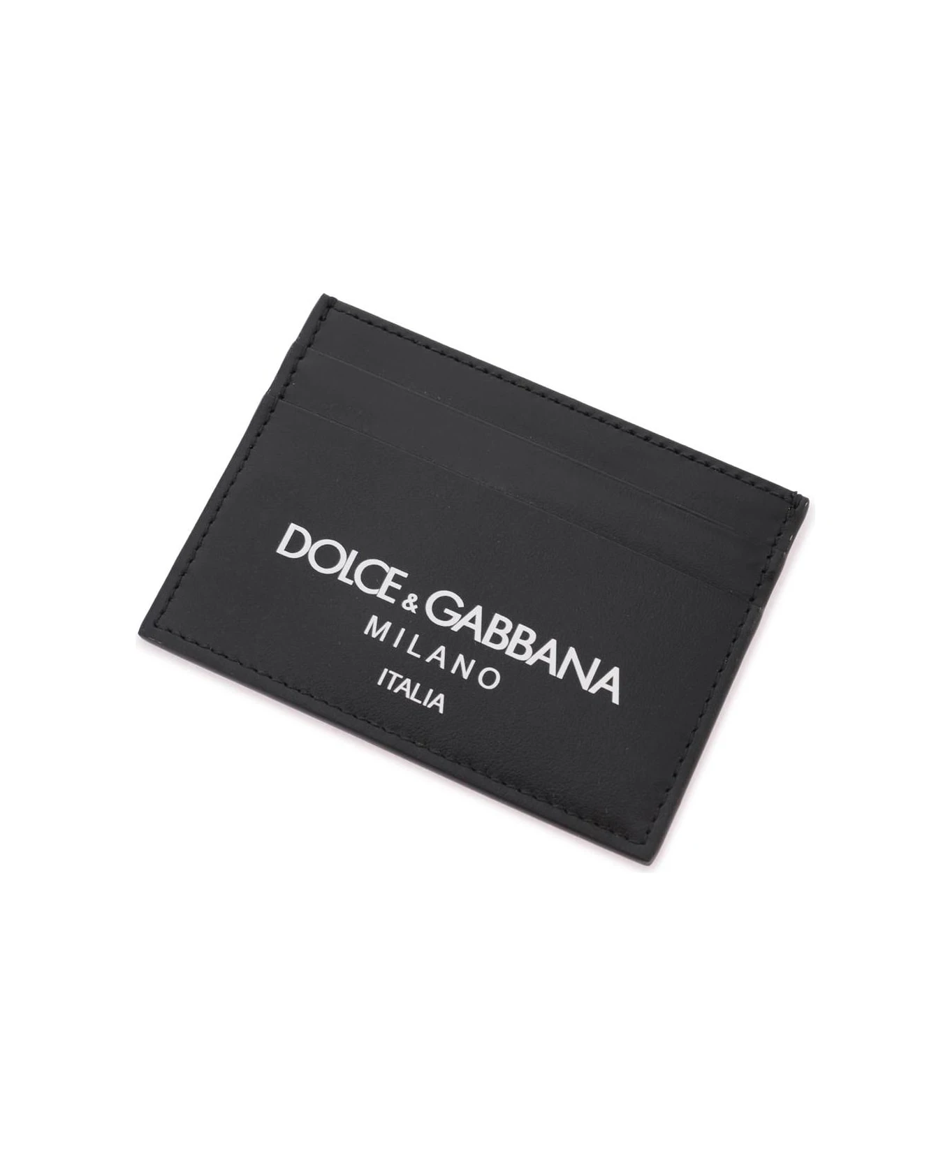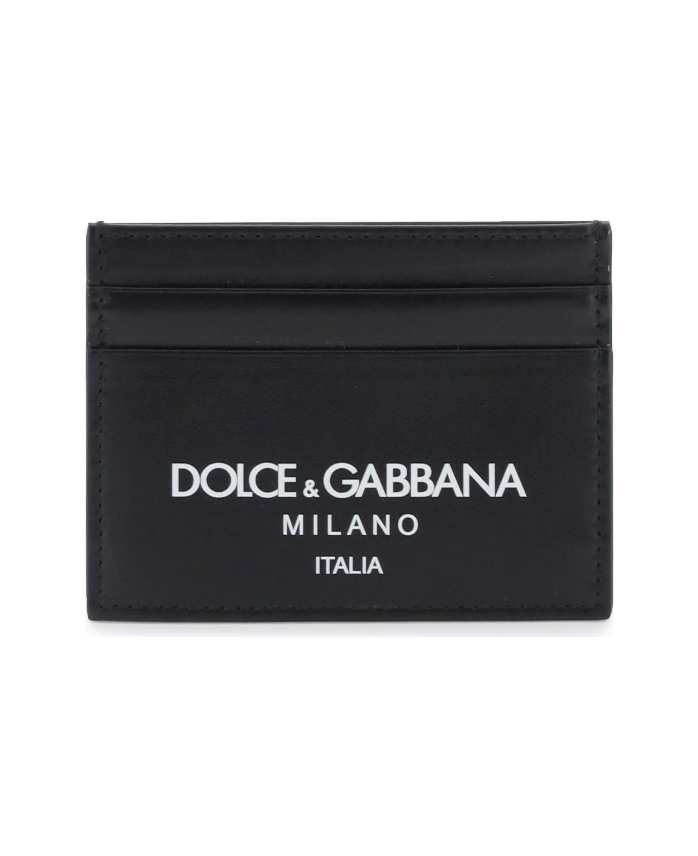 Dolce & Gabbana cardholder crafted in smooth leather featuring contrasting lettering logo print, top slit pocket and four card slots.