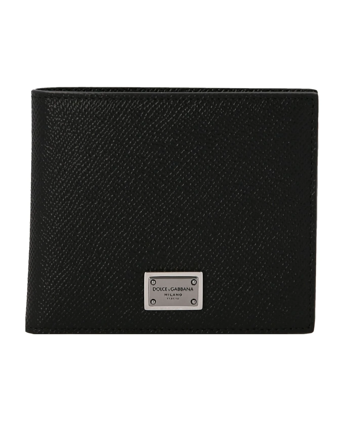 Leather wallet with logo plaque.