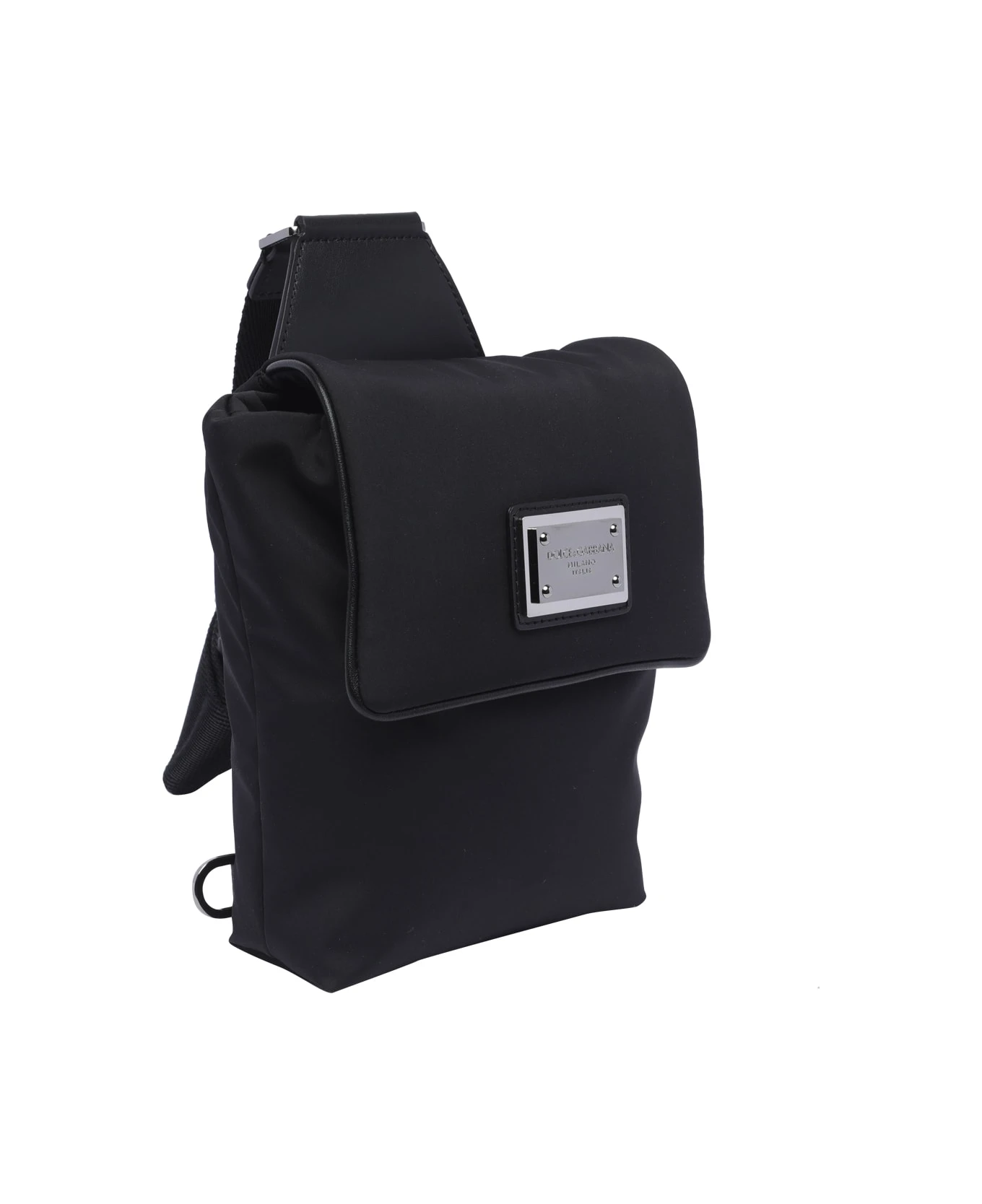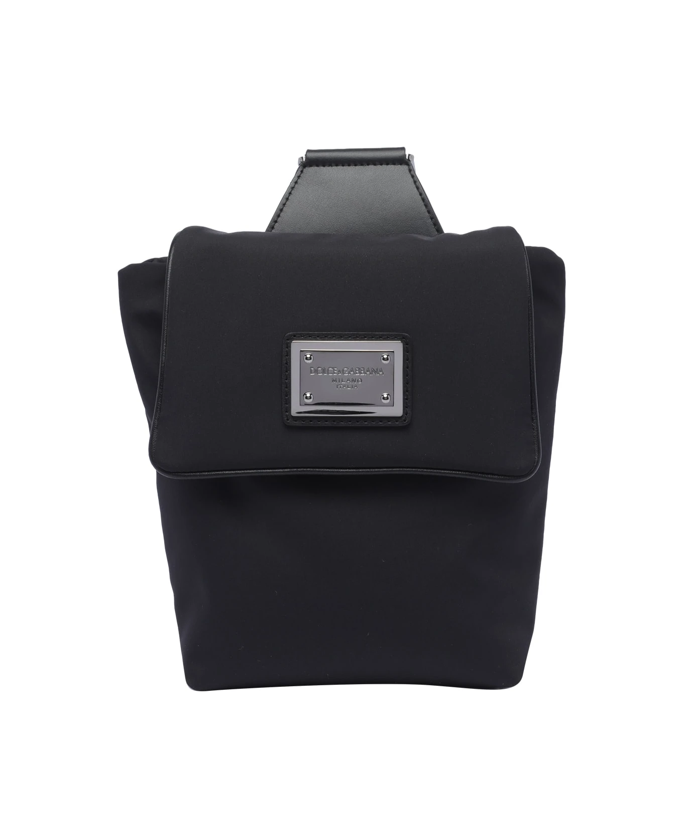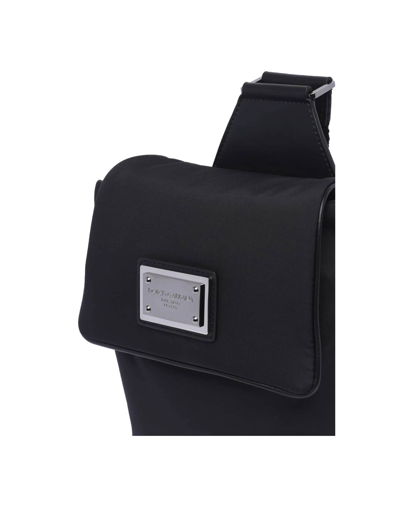 Dolce&Gabbana black Nylon belt bag, magnetic closure, external zip pocket, inner clip pocket, adaptable strap, frontal plaque logo