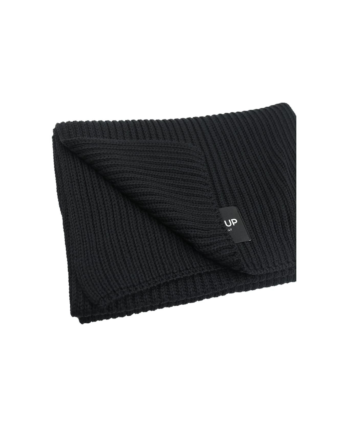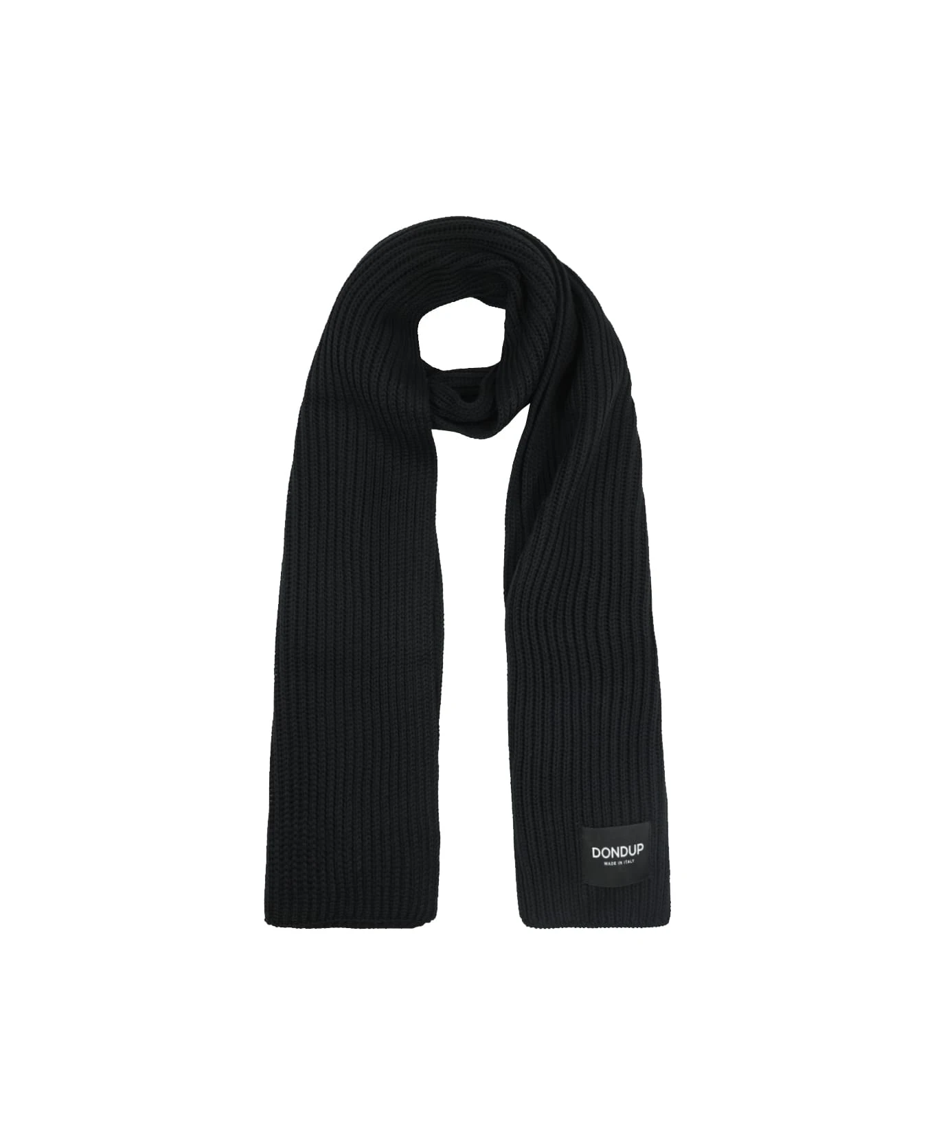 Ribbed scarf with logo label applied on the bottom, technical wool. Dimensions: 30 x 190cm. Black colour. Composition: 50% Wool 50% Acrylic. Made in Italy