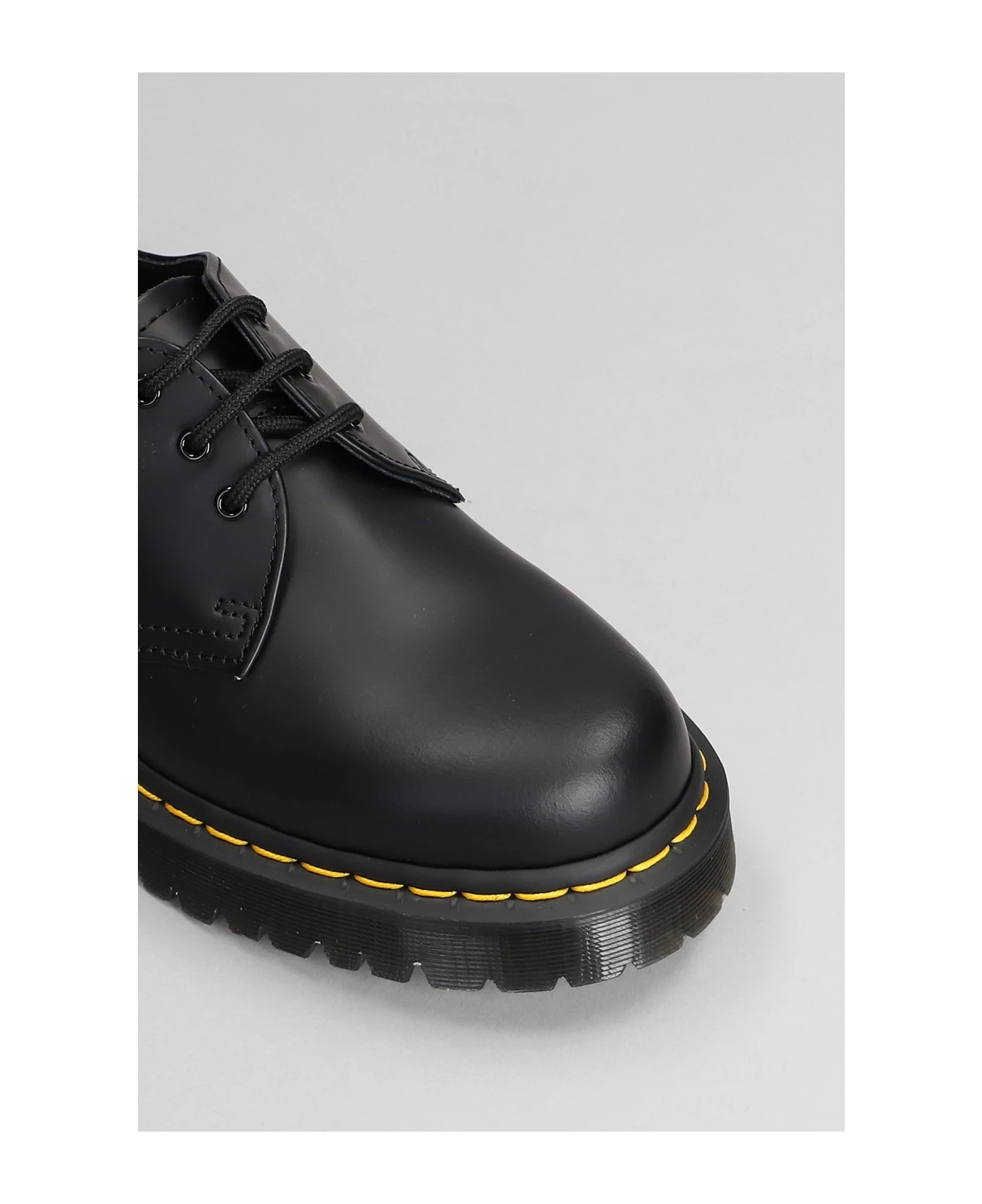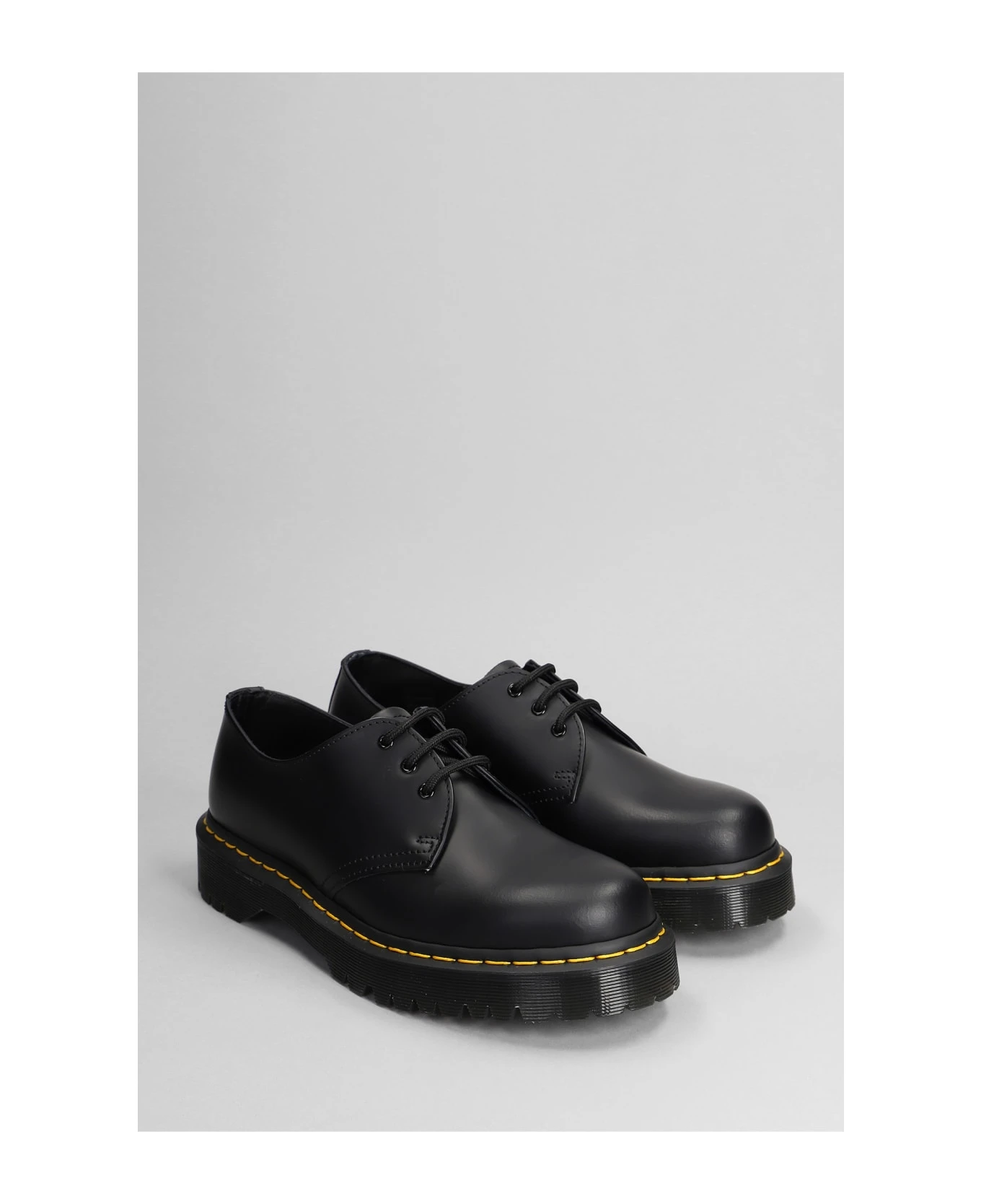 1461 Bex Lace up shoes in black leather, round toe, laces, stitching detail, rubber outsole, 100% leather, heel 4,5, made in Laos