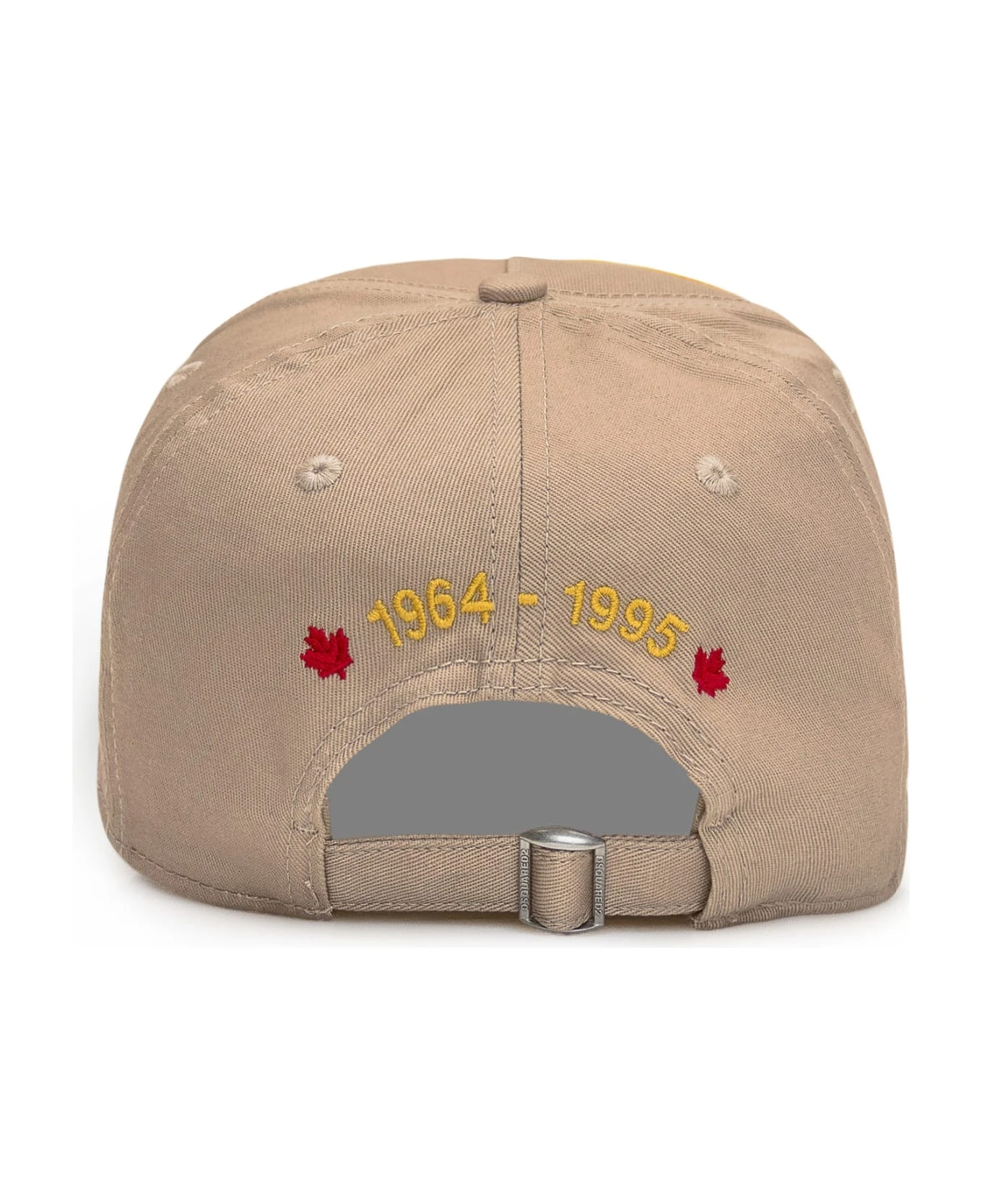 Beige baseball hat. Curved visor. Adjustable strap on the back. Embroidery on the back. Patch logo on the front.