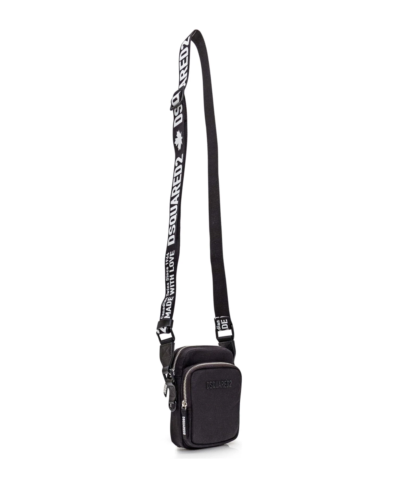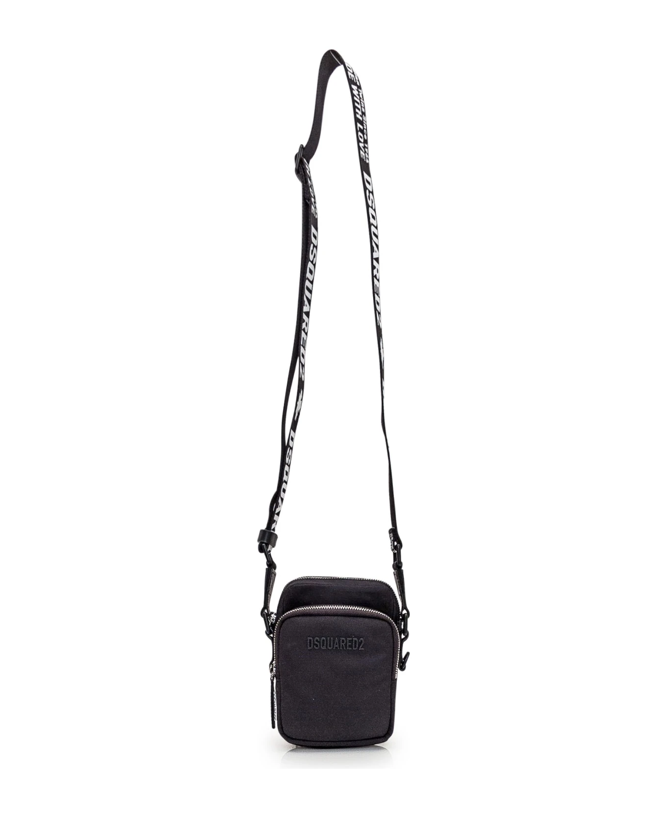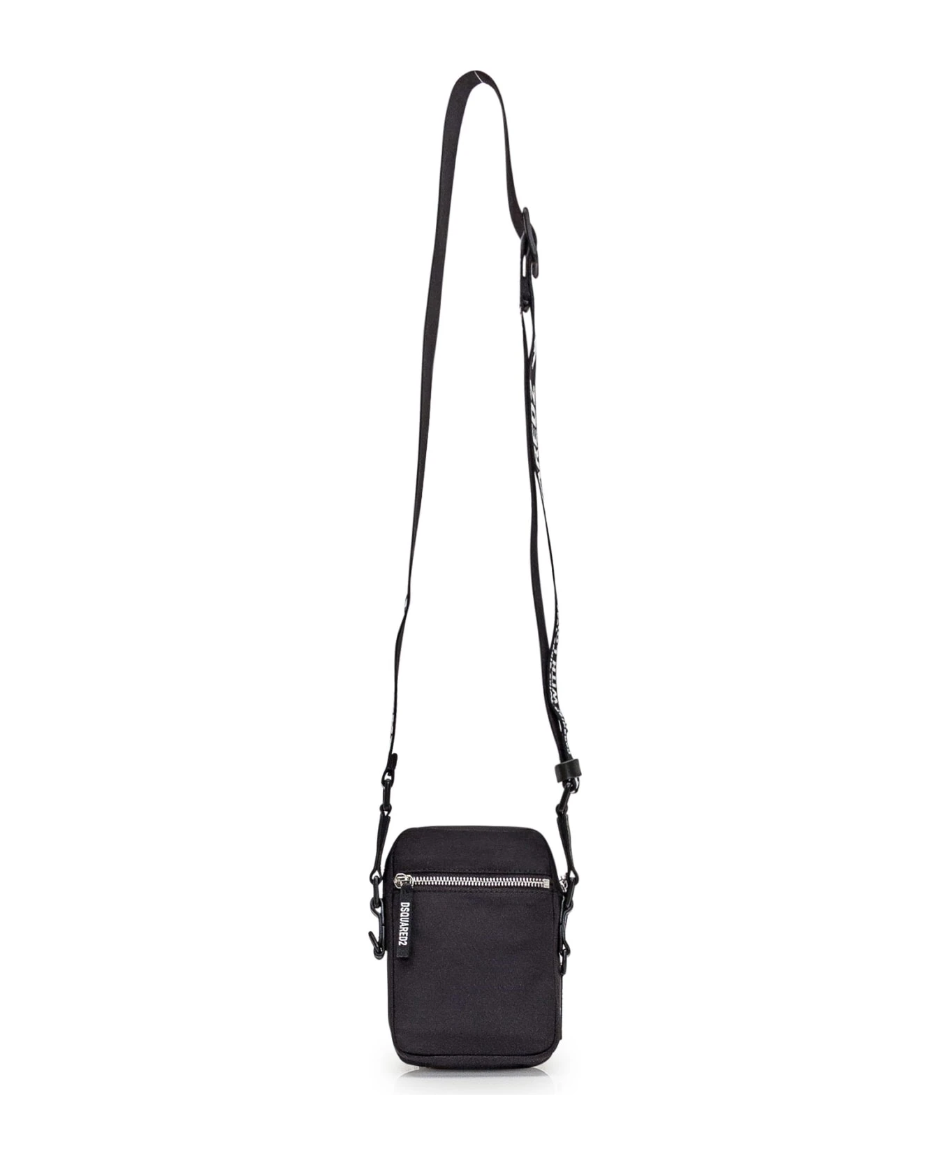 Black shoulder bag. Adjustable logoed shoulder strap. Three zip pockets. Logo lettering on the front.