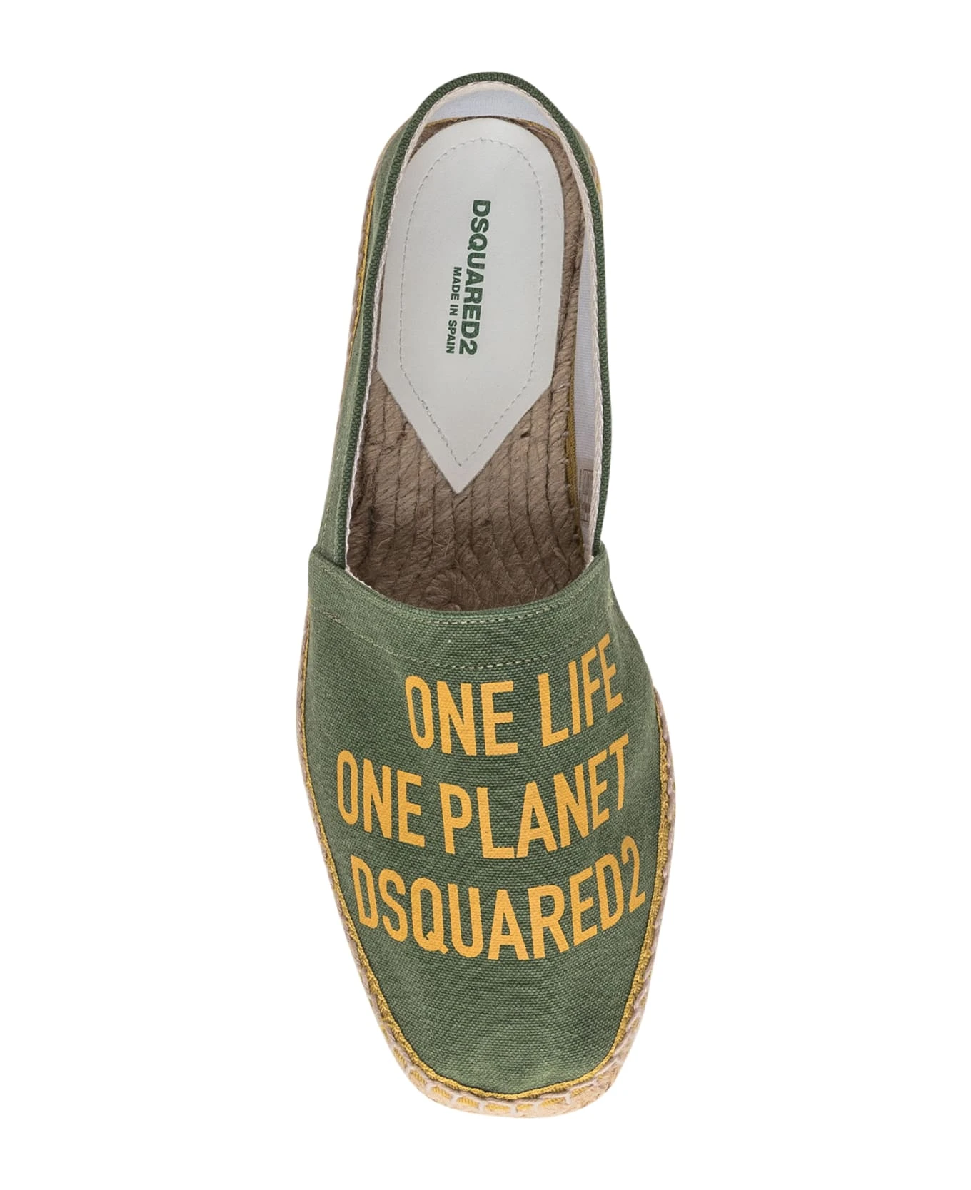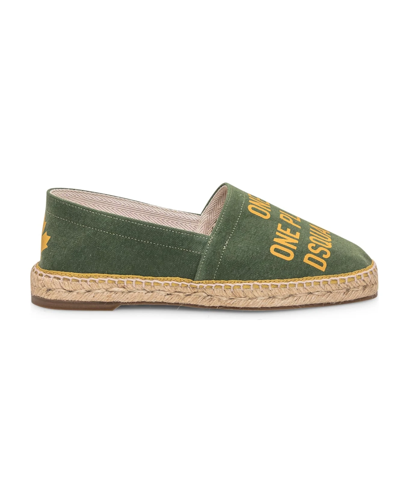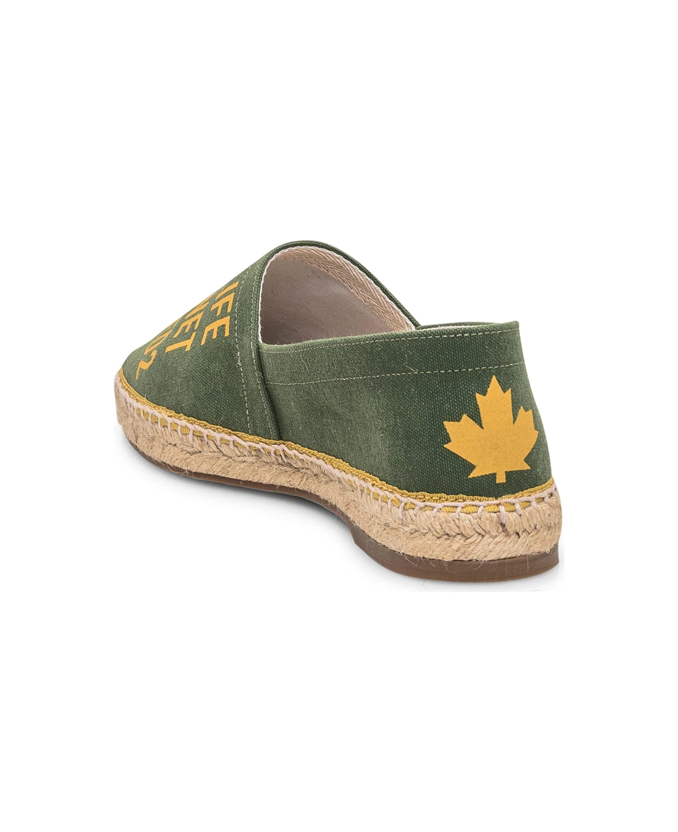Green espadrilles. Slip-on. Logo printed on the heel. Lettering print on the tip.