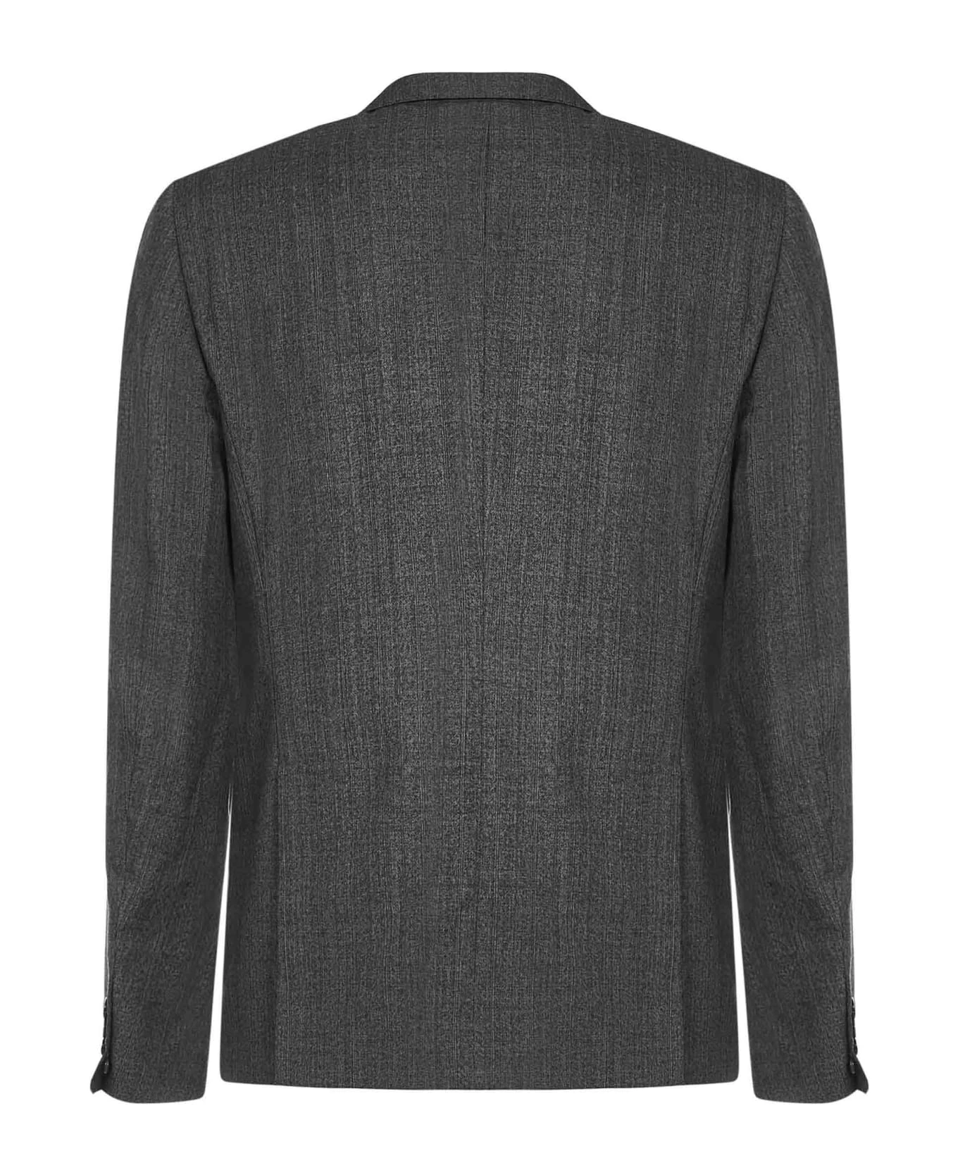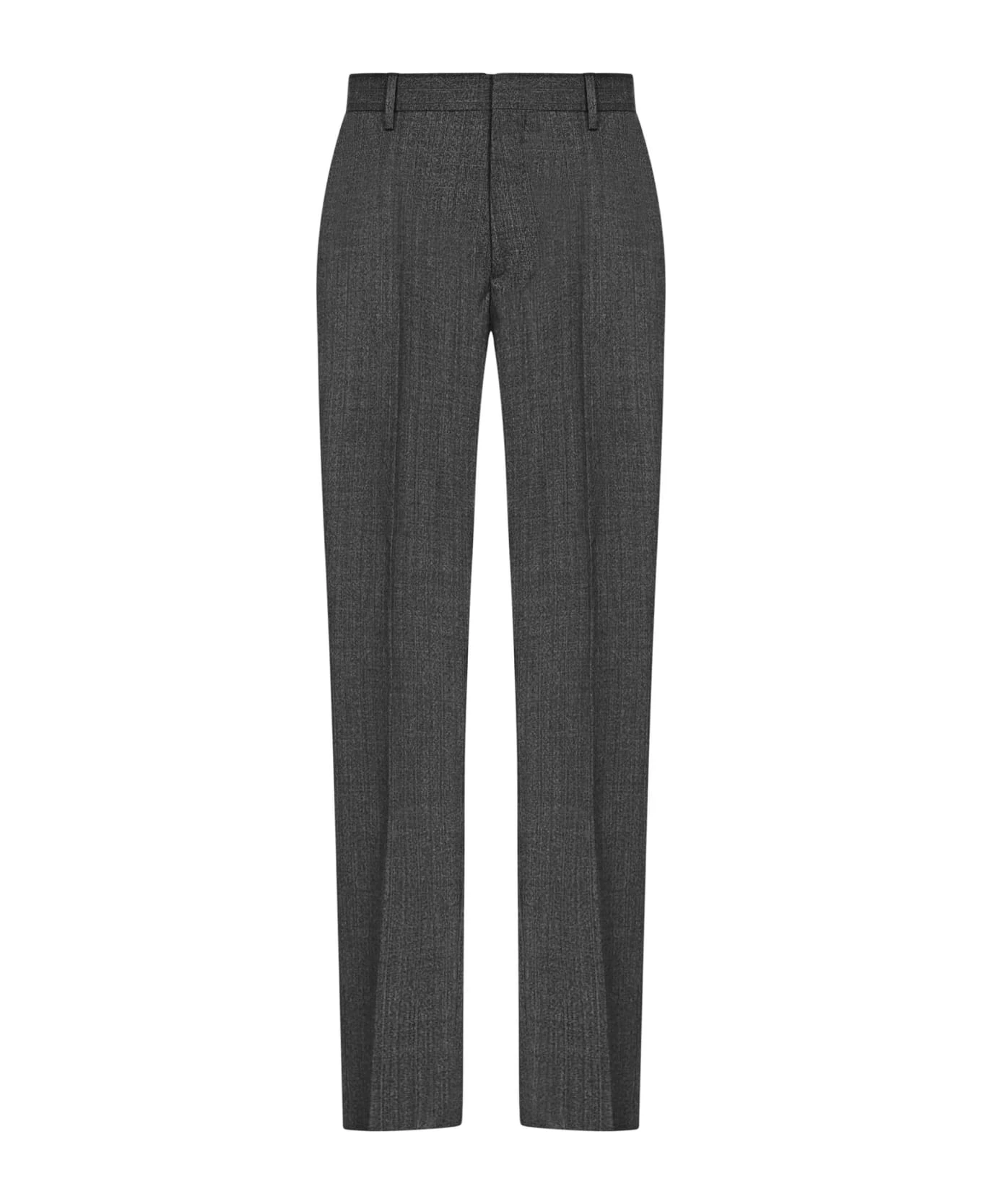 - Trousers: Concealed front fastening with zip and hook; Belt loops; Two side pockets, two rear welt pockets with button; Ironed central pleat; Slim leg