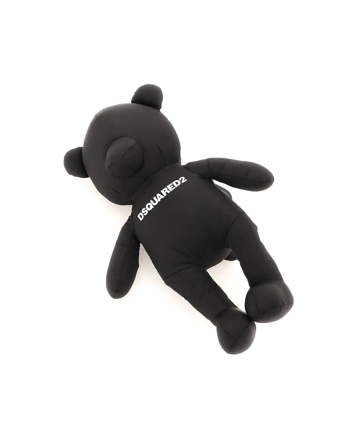 DSQUARED2 keychain with carabiner in the shape of a teddy bear made of technical fabric with contrasting lettering logo printed logo on the front.