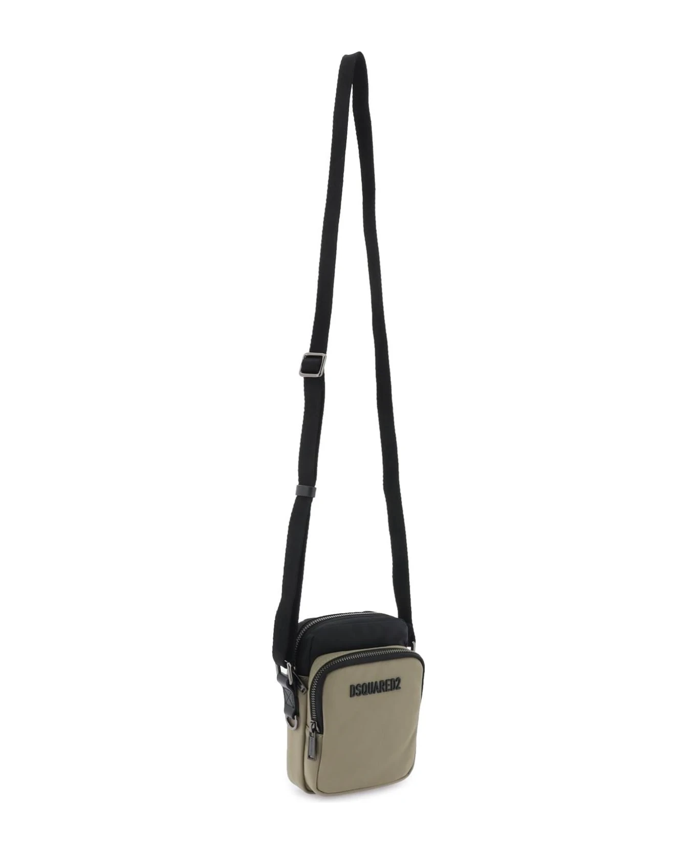 Urban nylon crossbody bag by DSQUARED2 contrasting rubberized lettering logo applied to the front pocket. Zippered main compartment, lined interior with one open pocket, additional rear slit pocket and adjustable shoulder strap. Silver-finish metalware.