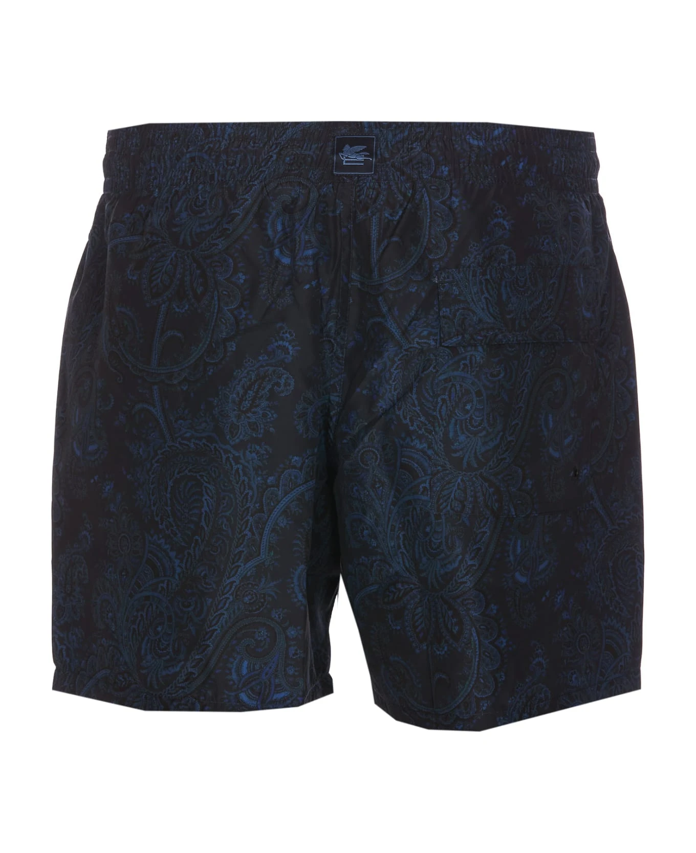Etro blue beachwear with coulisse closure, elasticized on waist, lateral pockets, paisley print