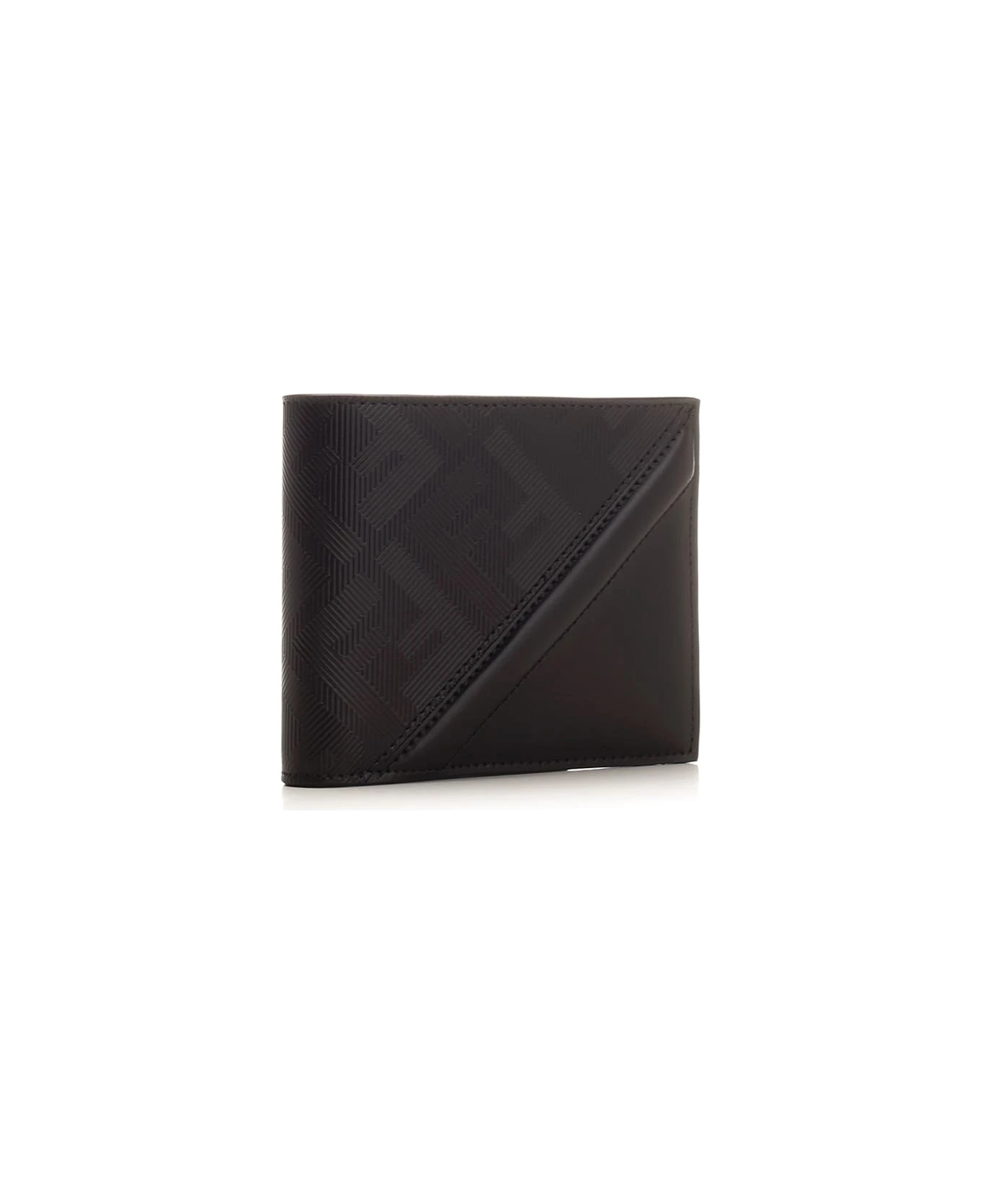 Fendi bifold wallet in black Shadow leather with the striped FF motif