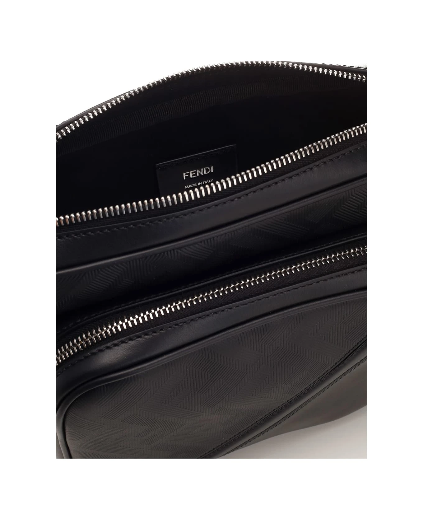 Black leather shoulder bag from Fendi, with adjustable shoulder strap, top zip, zip pocket.