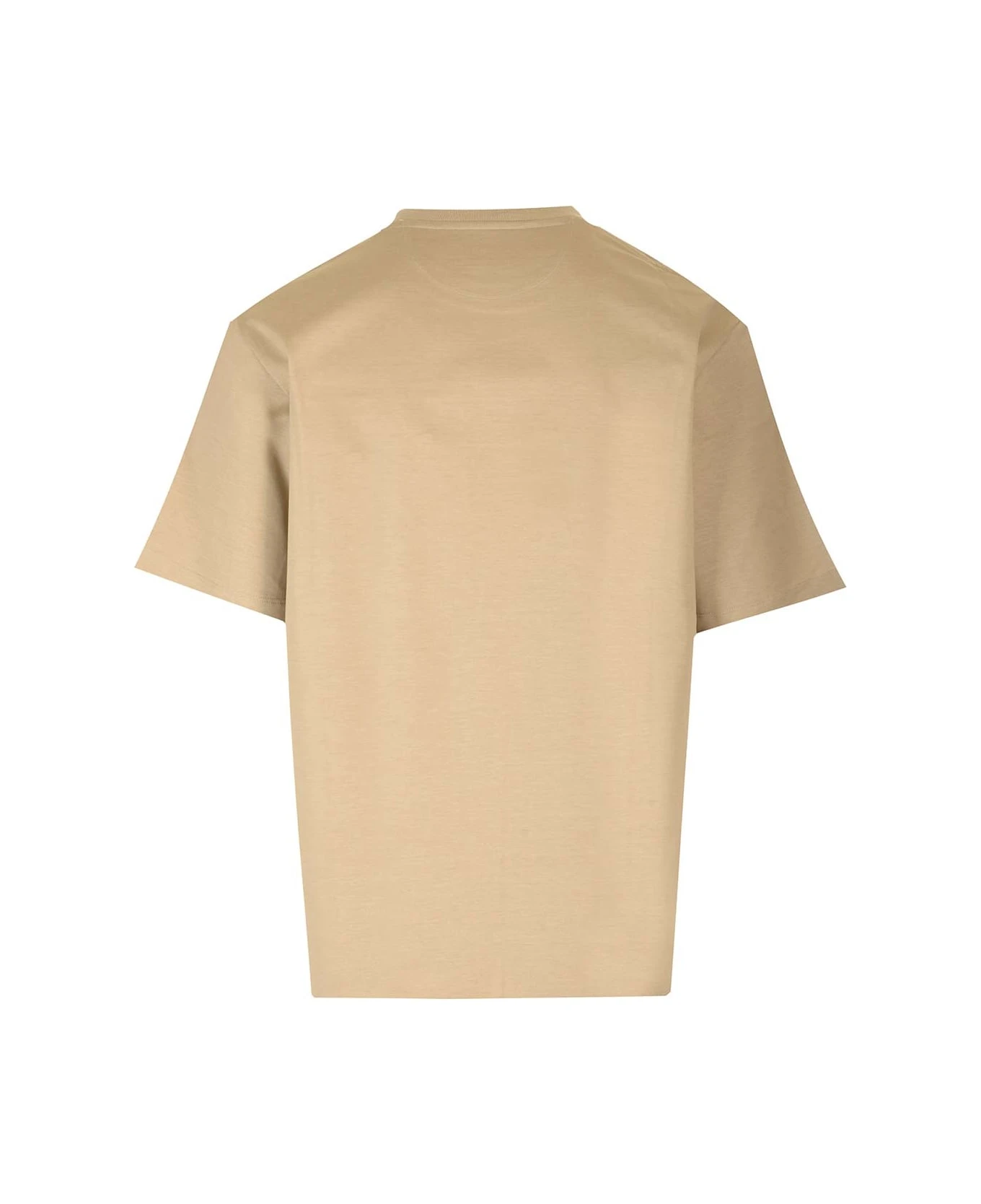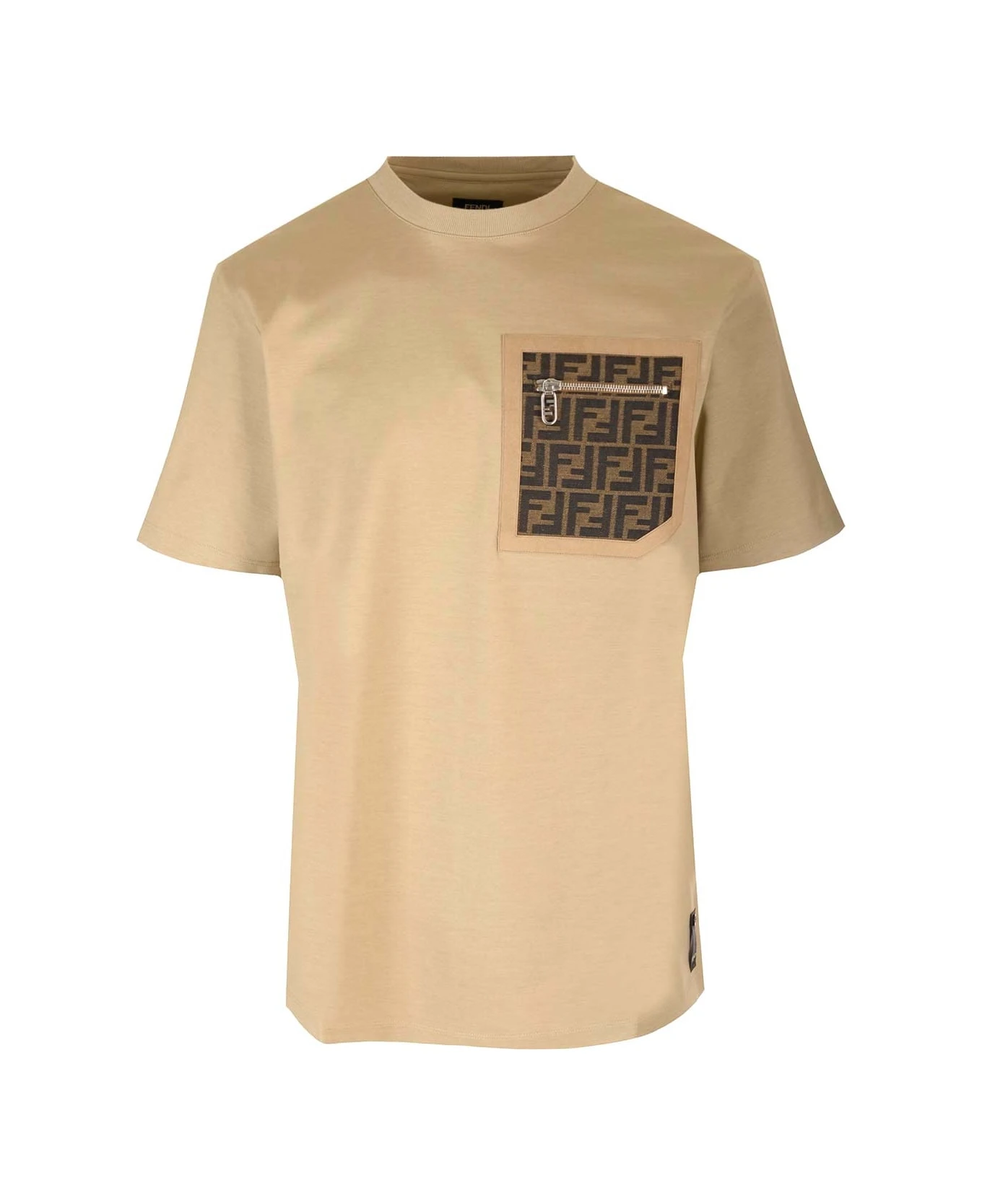 Fendi crew-neck T-shirt in beige cotton jersey with pocket in contrasting FF jacquard fabric