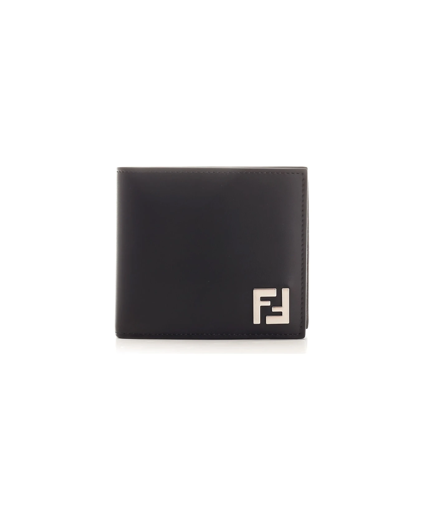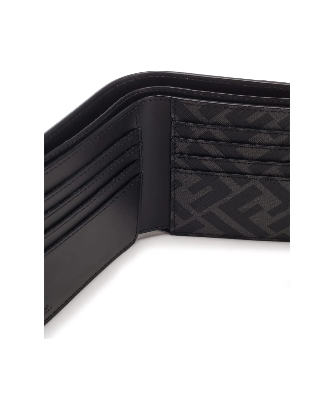 Black Bifold wallet from Fendi in leather, interior organized into 8 card slots and a compartment for banknotes, finished with FF fabric detail in shades of gray and black, FF Squared accessory in metal with palladium finish.