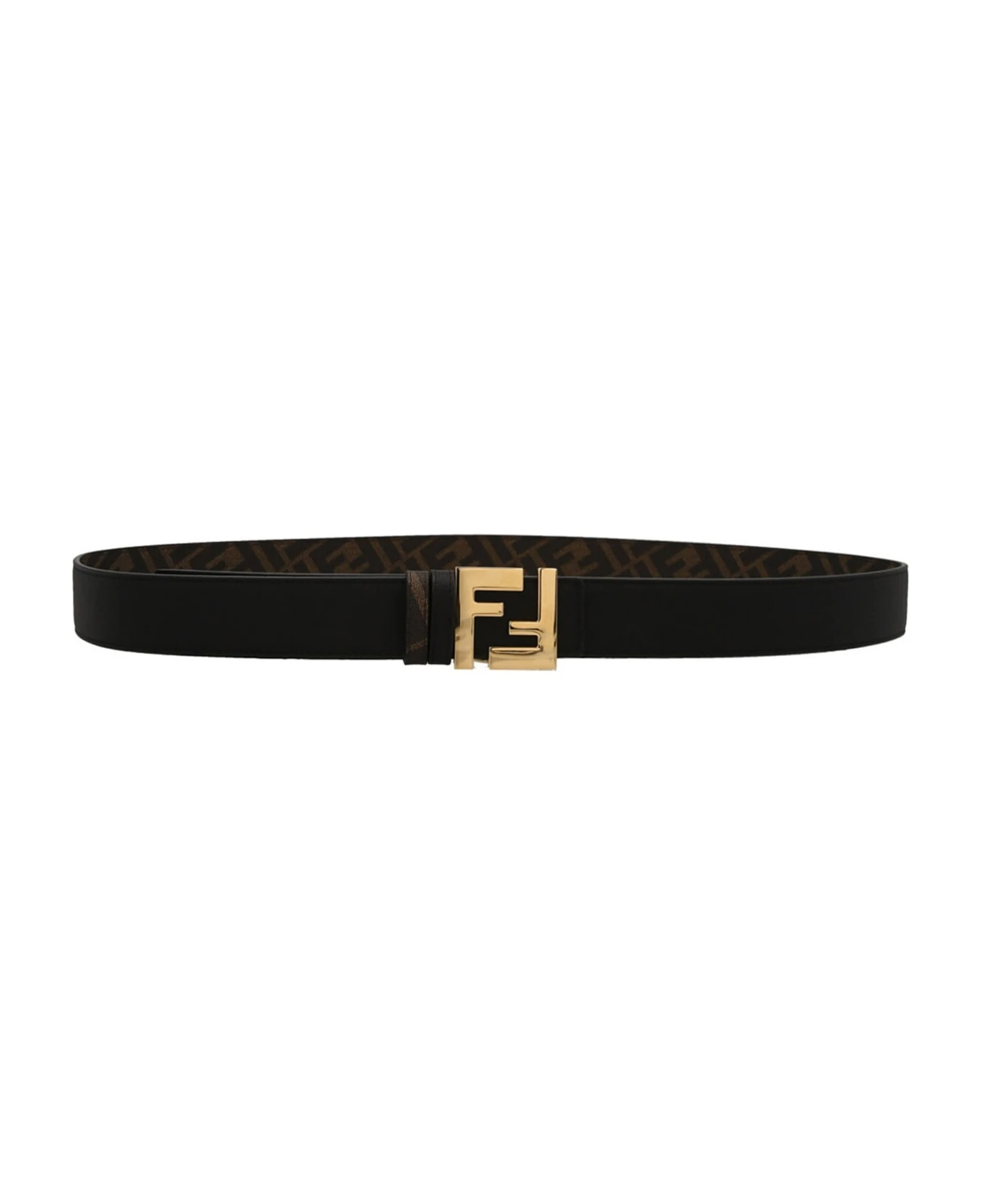 ‘FF Squared’ black leather and fabric reversible belt with logo pattern, metal buckle logo.