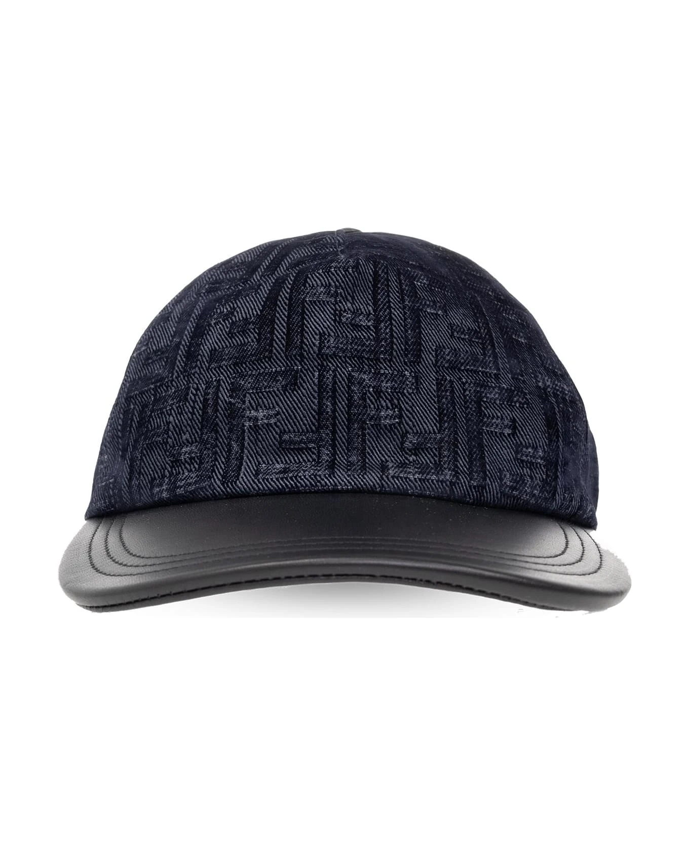 Navy blue baseball cap from Fendi. Crafted from monogrammed canvas, this item fastens with a back velcro closure and features a black leather peak.