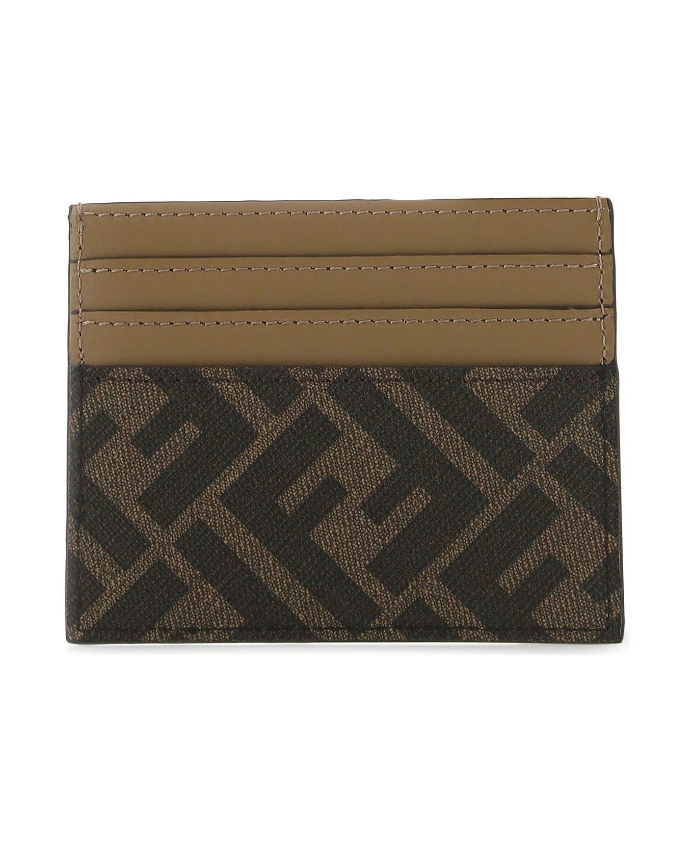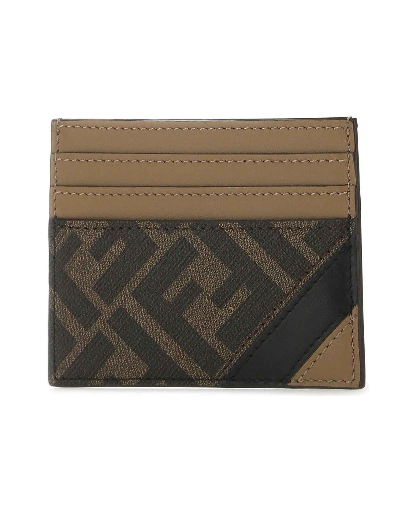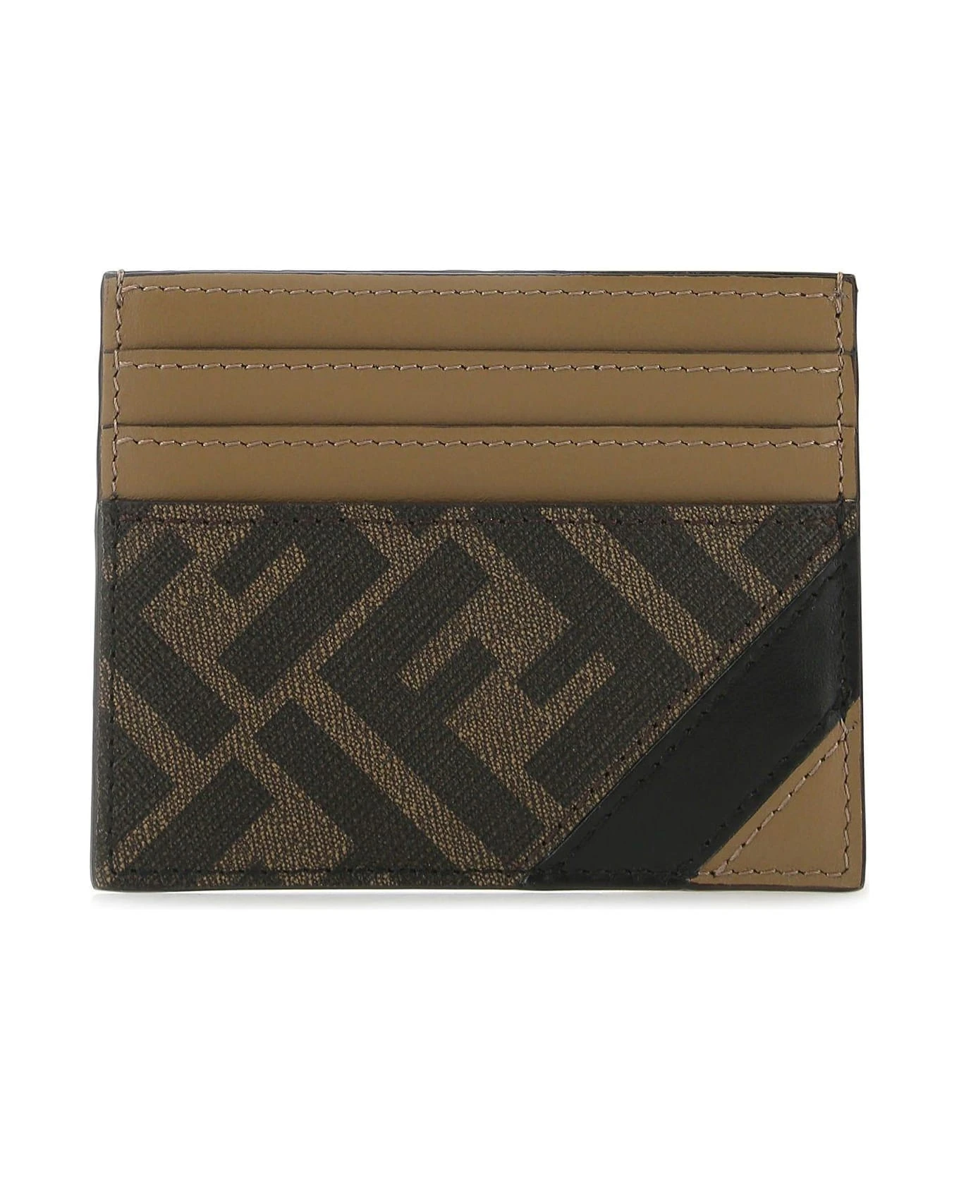 card holder realized in fabric with leather insert on the hemline characterized by FF motif embroidery on the entire surface.