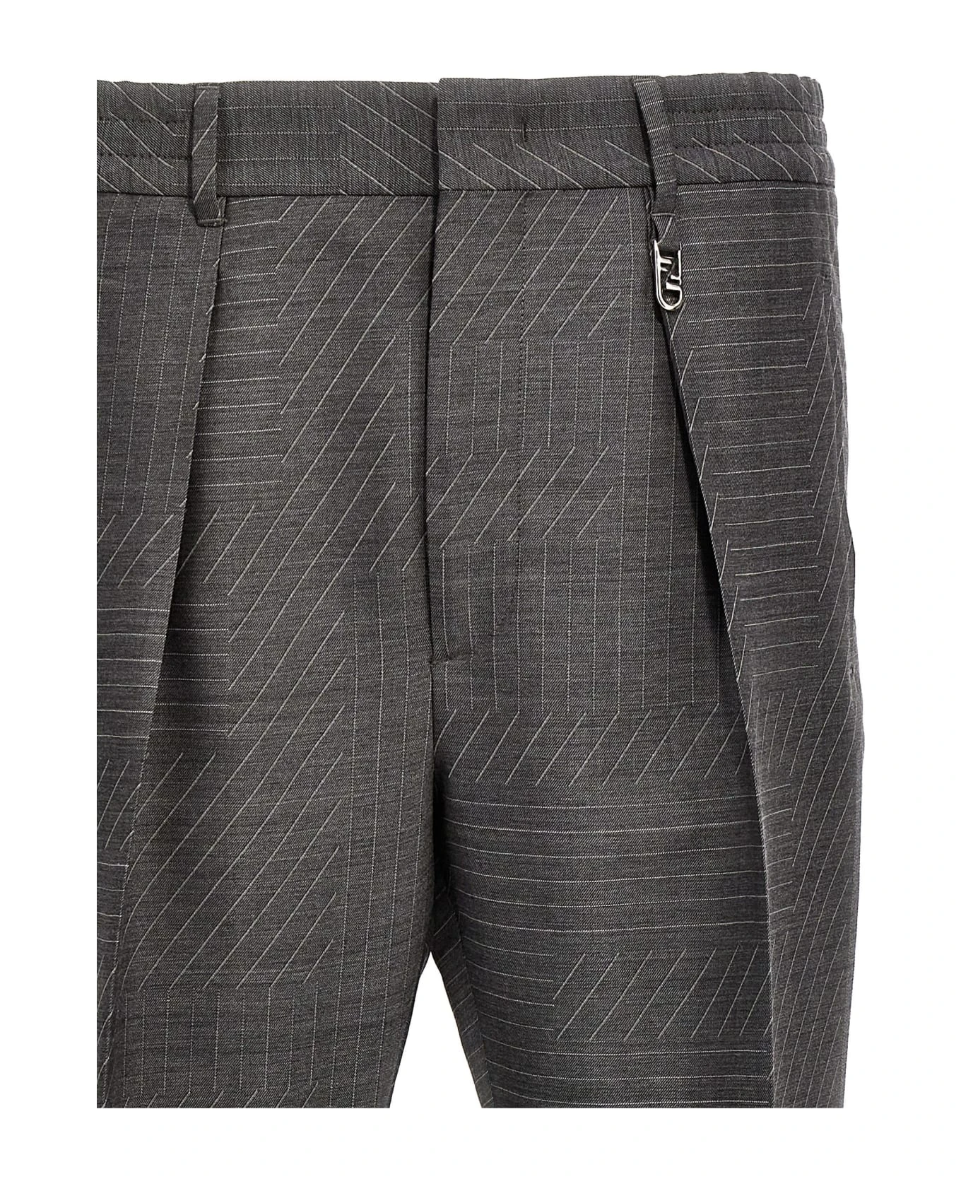 ‘Fendi Shadow’ wool pants with all-over pattern, zip and hook closure, elastic waistband, pockets, pleated leg.