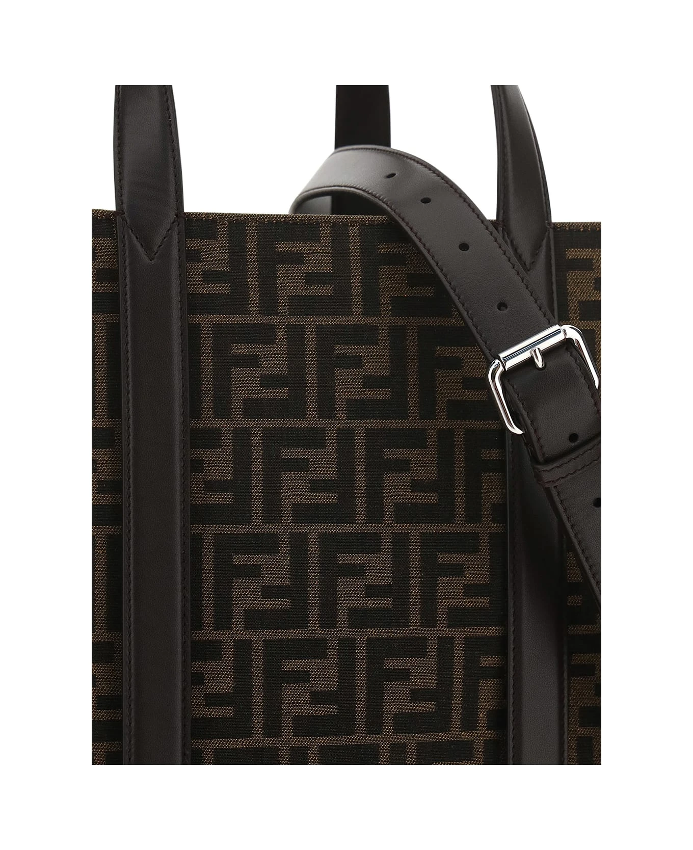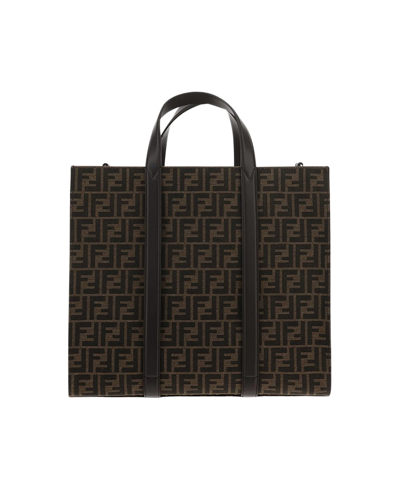 Tote handbag by fendi, double stiff top handles, removable and adjustable leather shoulder strap, interior welt pocket with zipper for closure, brand’s iconic ff print in all-over coated cotton.