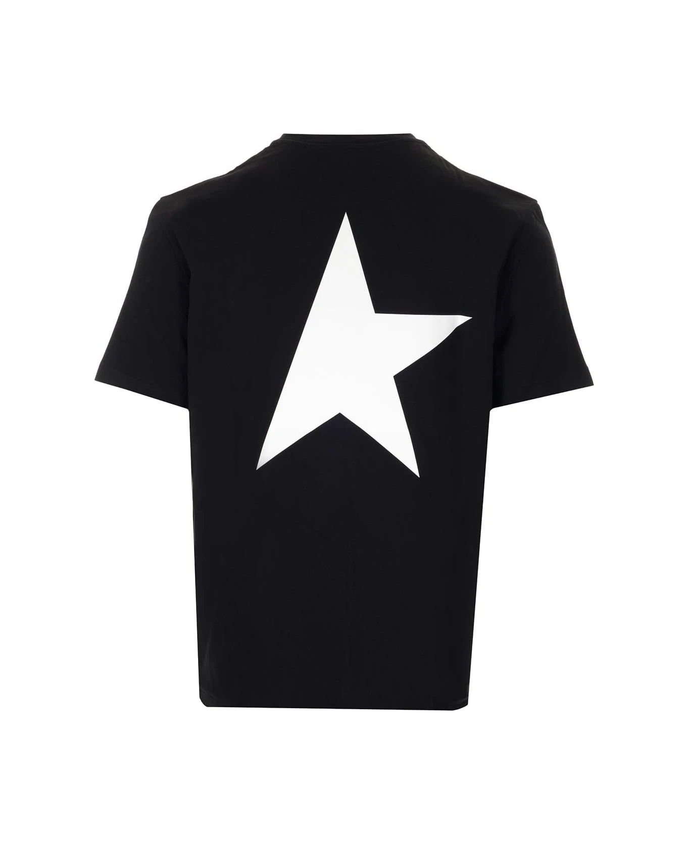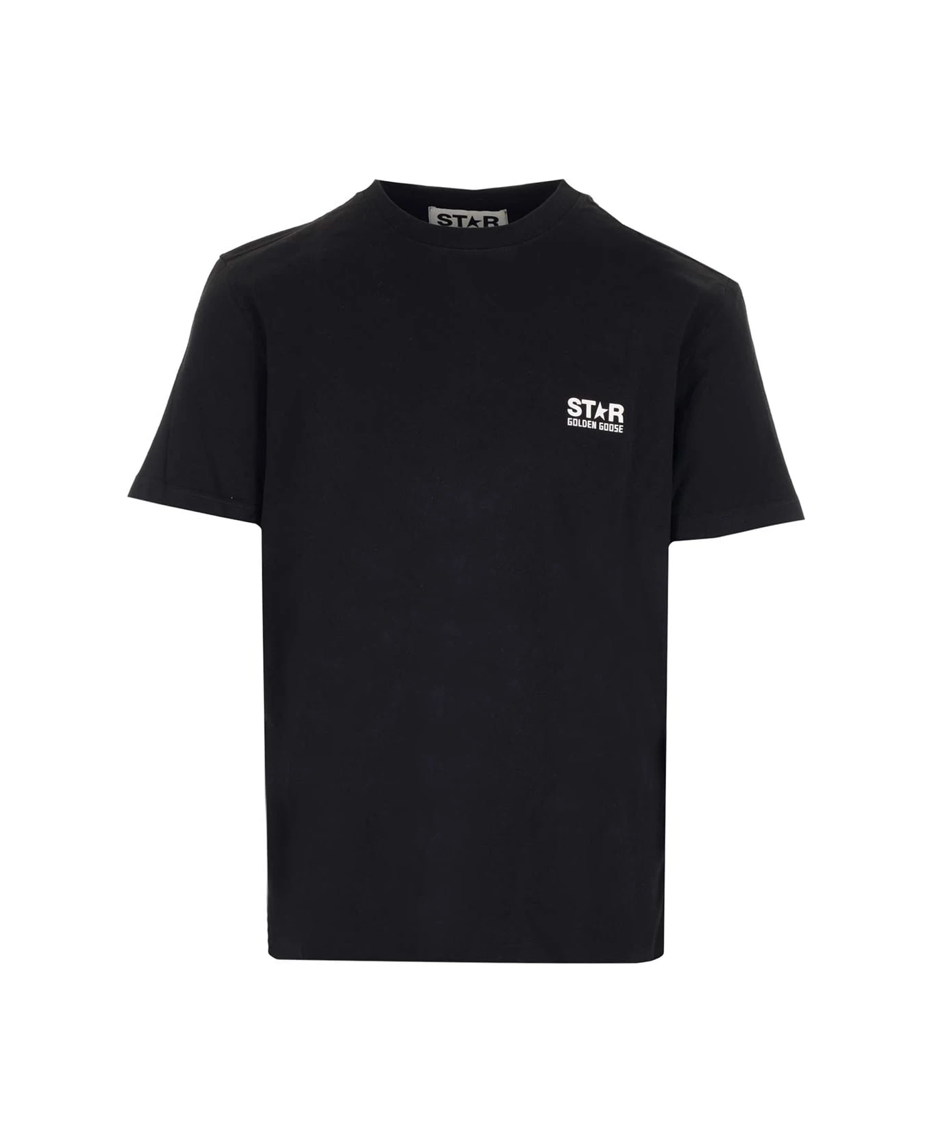 Black t-shirt from Golden Goose, white logo on one side of the chest, maxi white star on the back, short sleeves, crew neck.