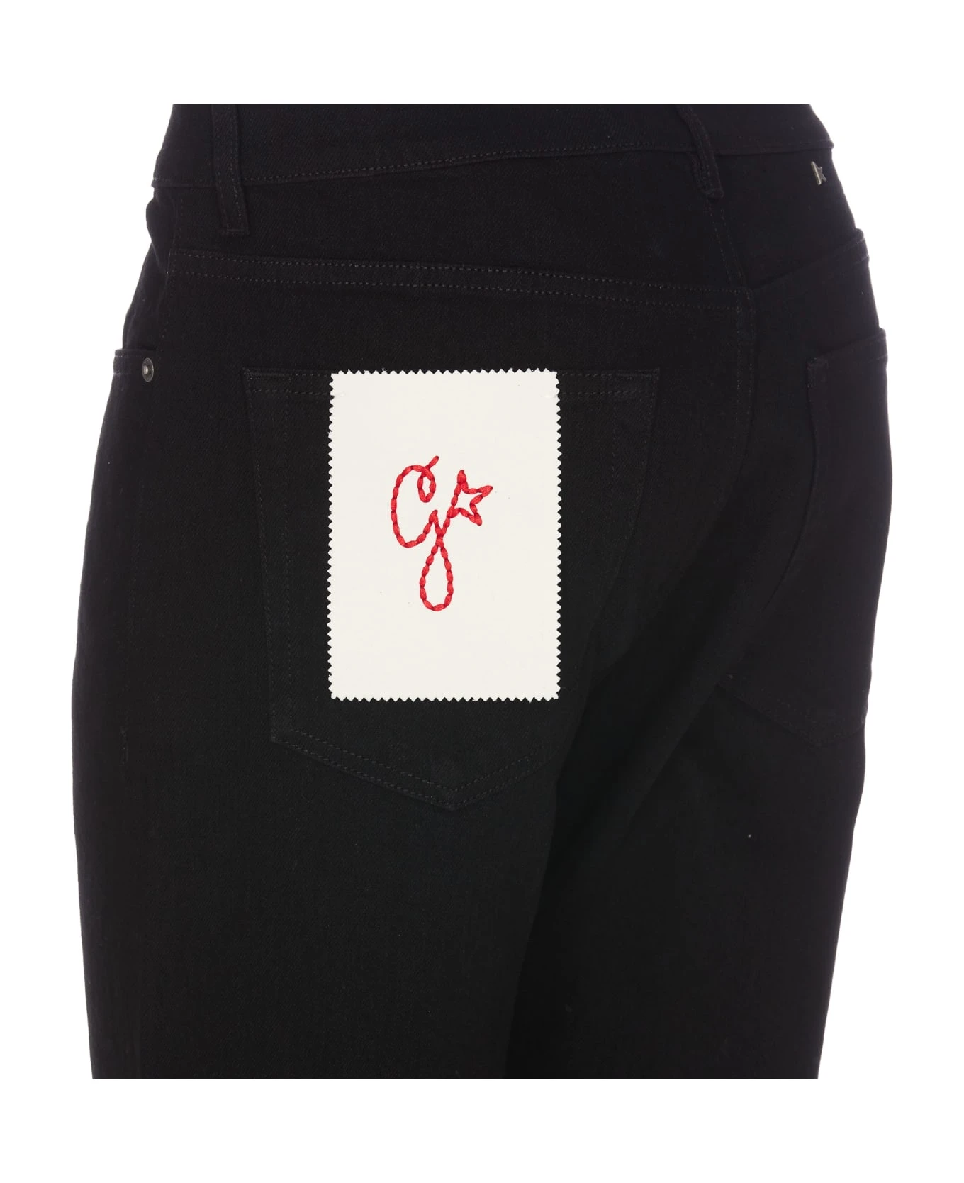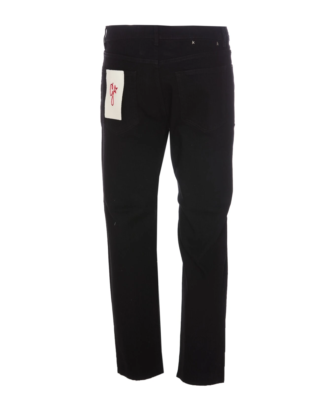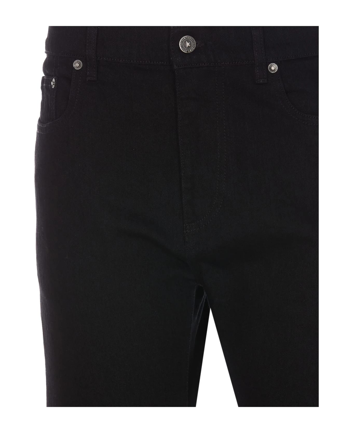 Golden Goose black denim jeans, frontal button and zip closure, 5 pockets, patch logo on the back, skinny model