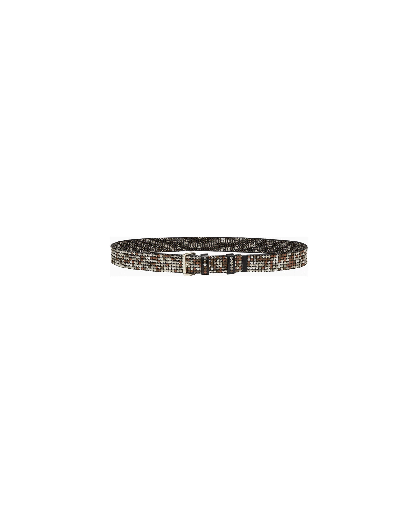 made in italy belt in washed leather. all-over metal studs. adjustable metal buckle closure. composition: 100% leather