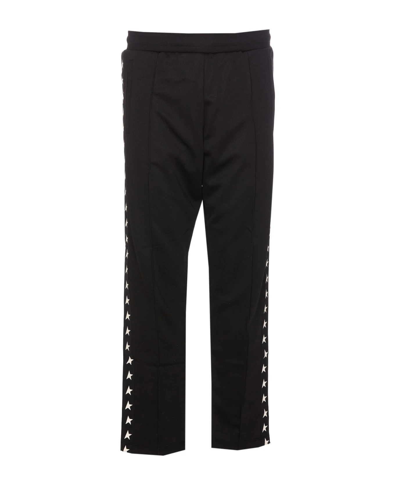 Golden Goose black trackpants, elasticized on the waist, coulisse closure, wide model, lateral stars logo on the legs
