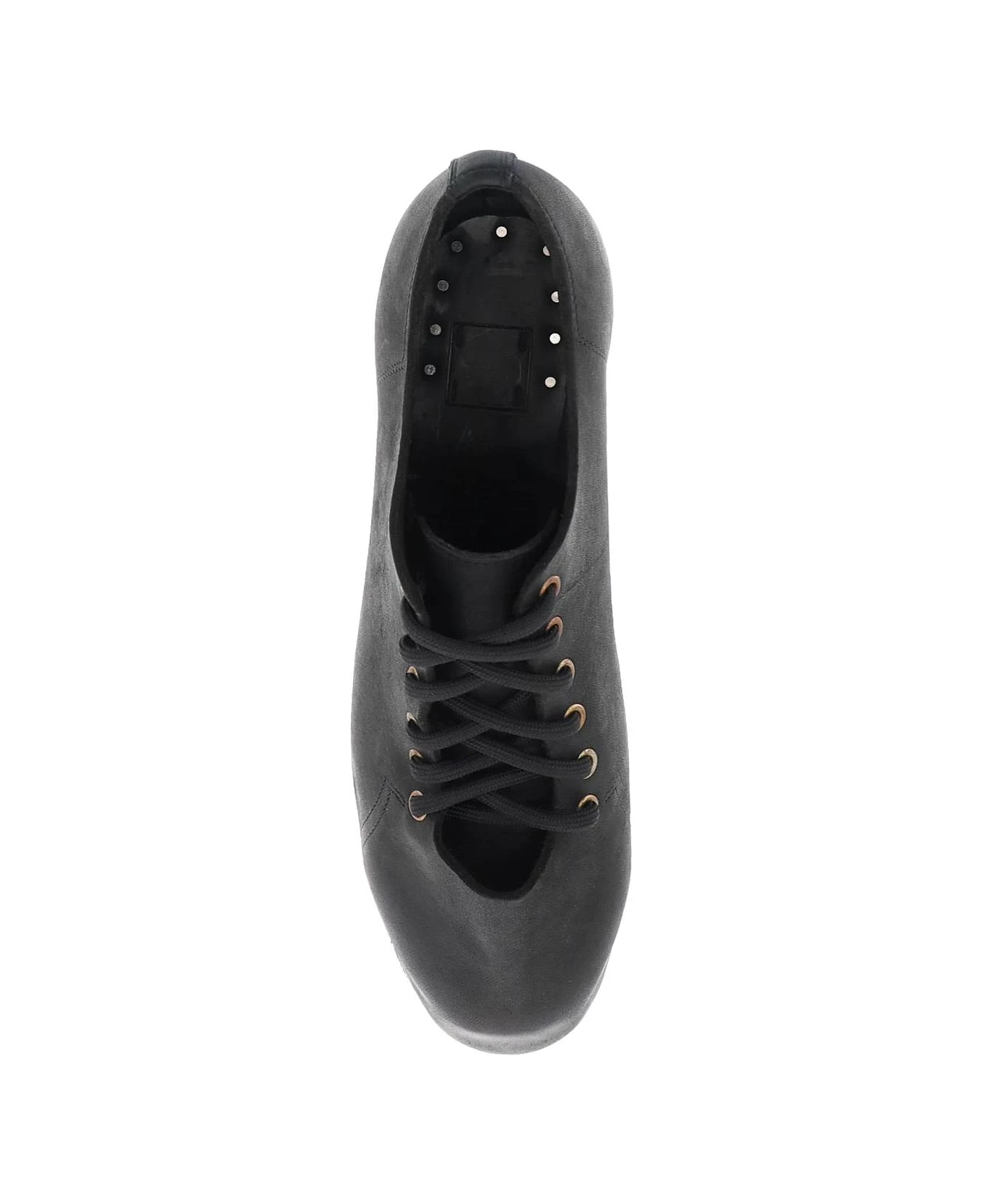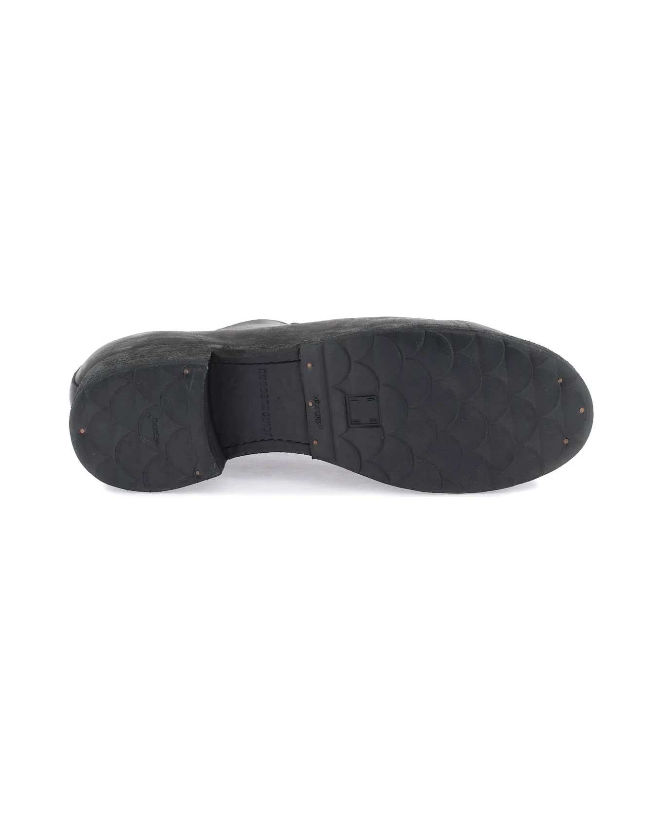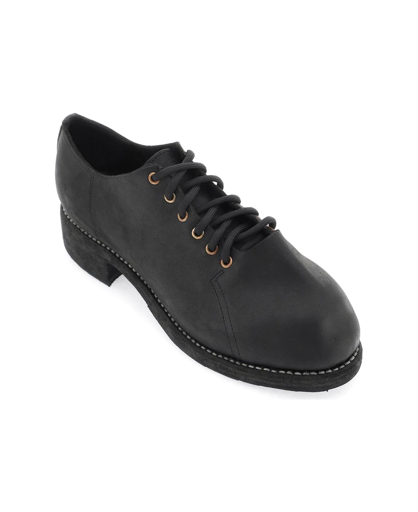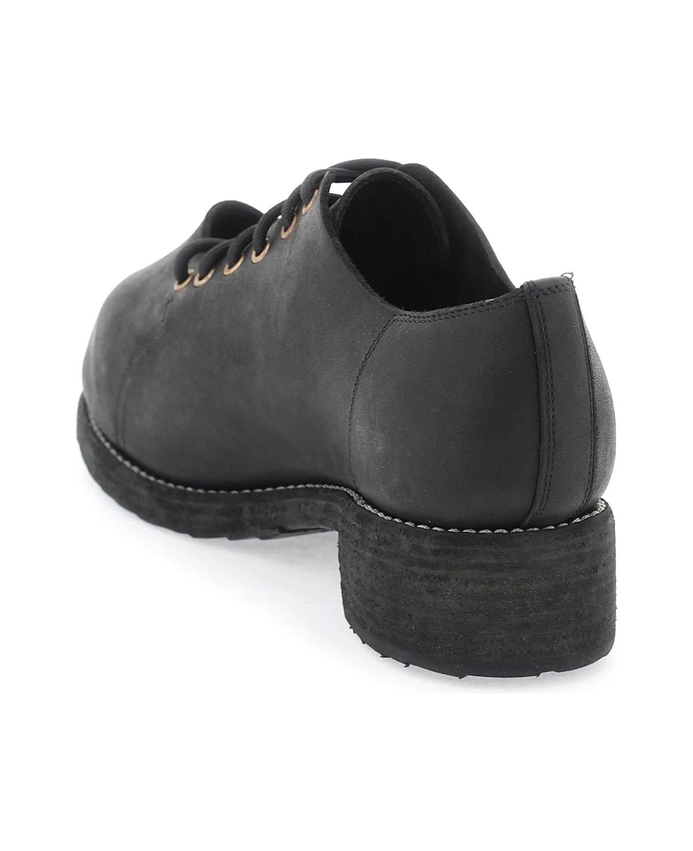 Guidi full grain leather lace-up shoes characterized by rounded lines. Unlined interior, leather insole and Vibram rubber sole.