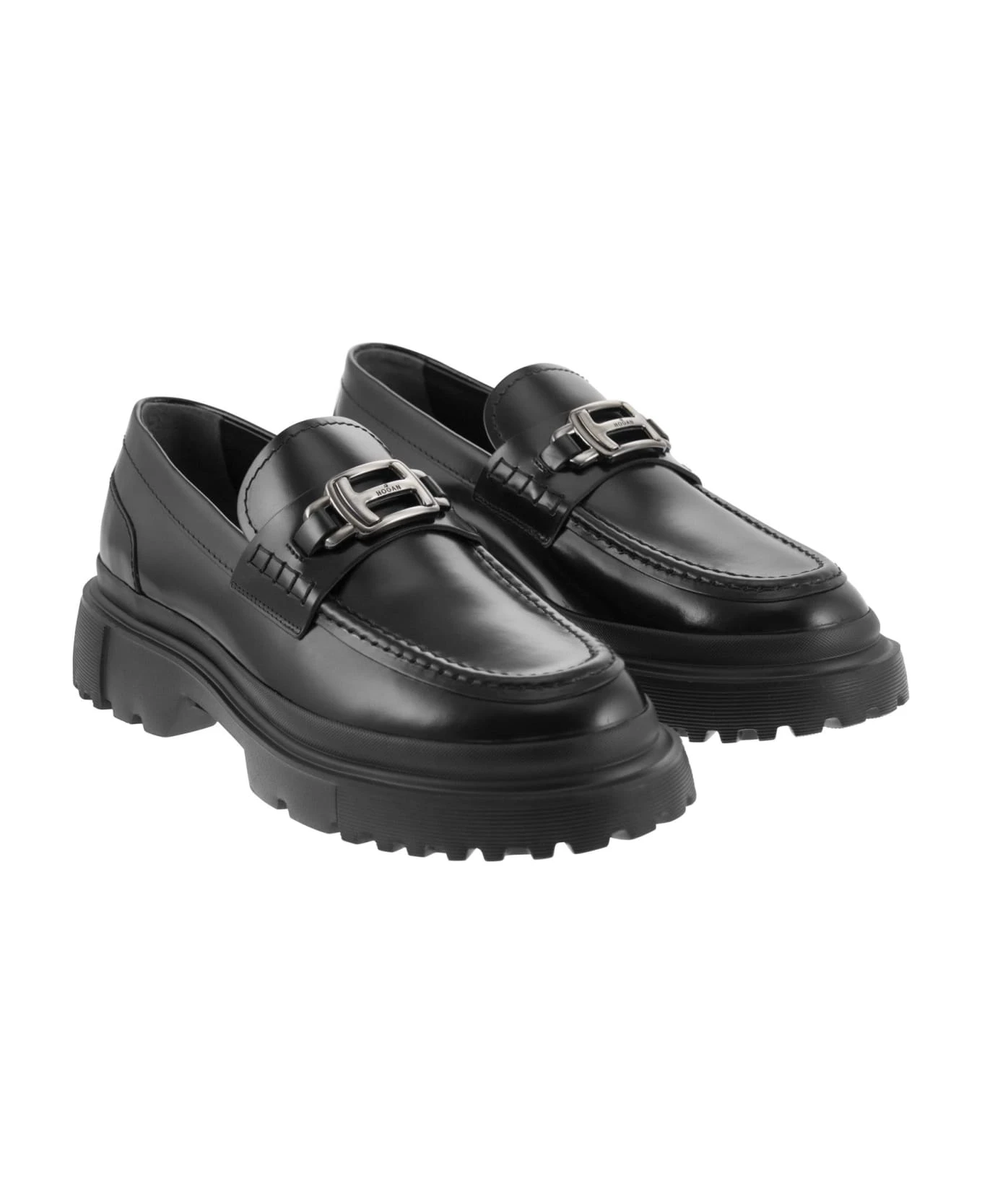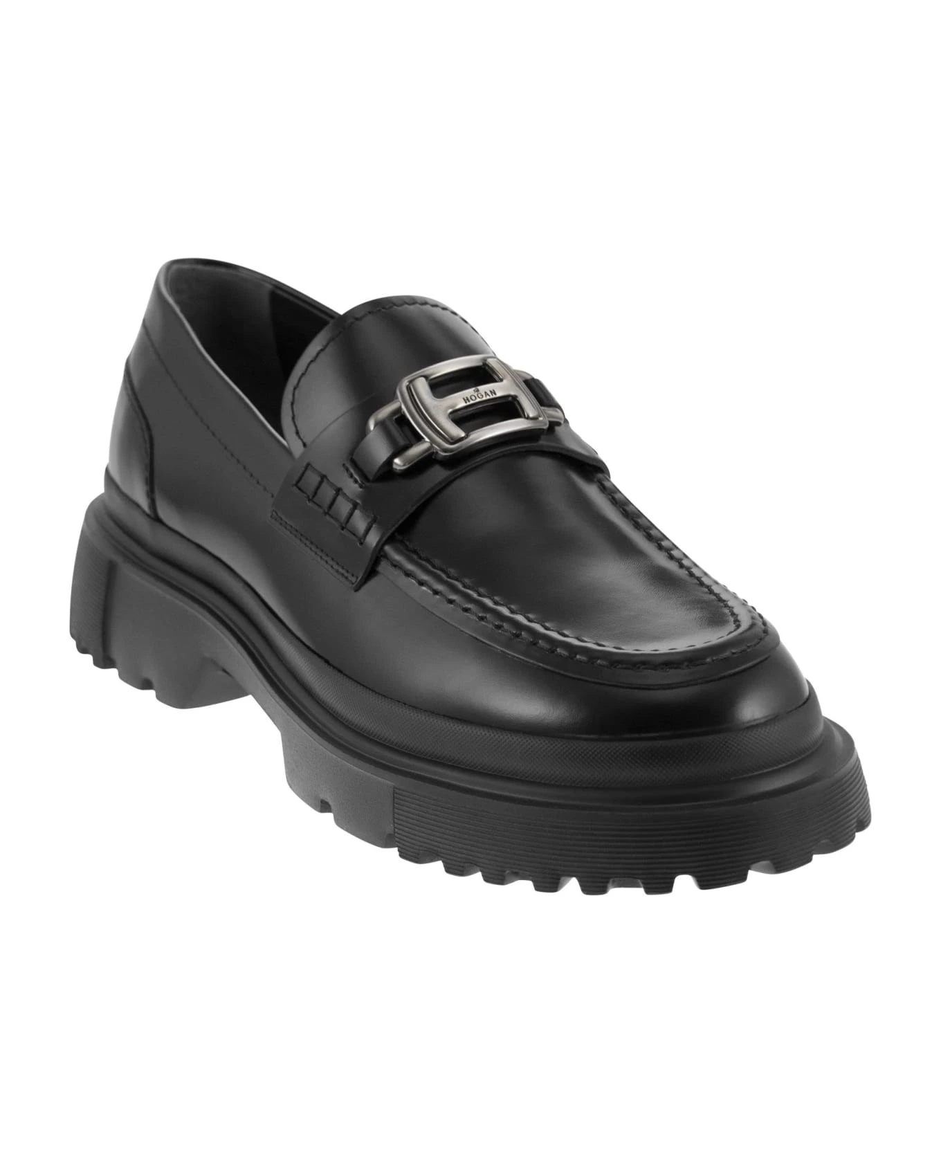 A new must-have for contemporary urban style, this men’s moccasin features a midsole sole with ribbed detailing. Designed for optimal grip, the tread features H-shaped external lugs. The military inspiration of the chunky bottom, with its strong and energetic character, contrasts with the elegant lines of the abrasivated leather upper, with a metal H-shaped vamp and accessory. – Abraded leather upper – Faceplate – Personalised metal H-accessory – Visible stitching – Memory foam footbed DESIGNER ID: HXM6290EP207J7B999