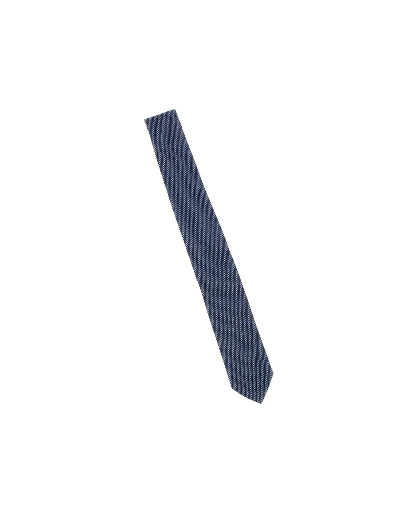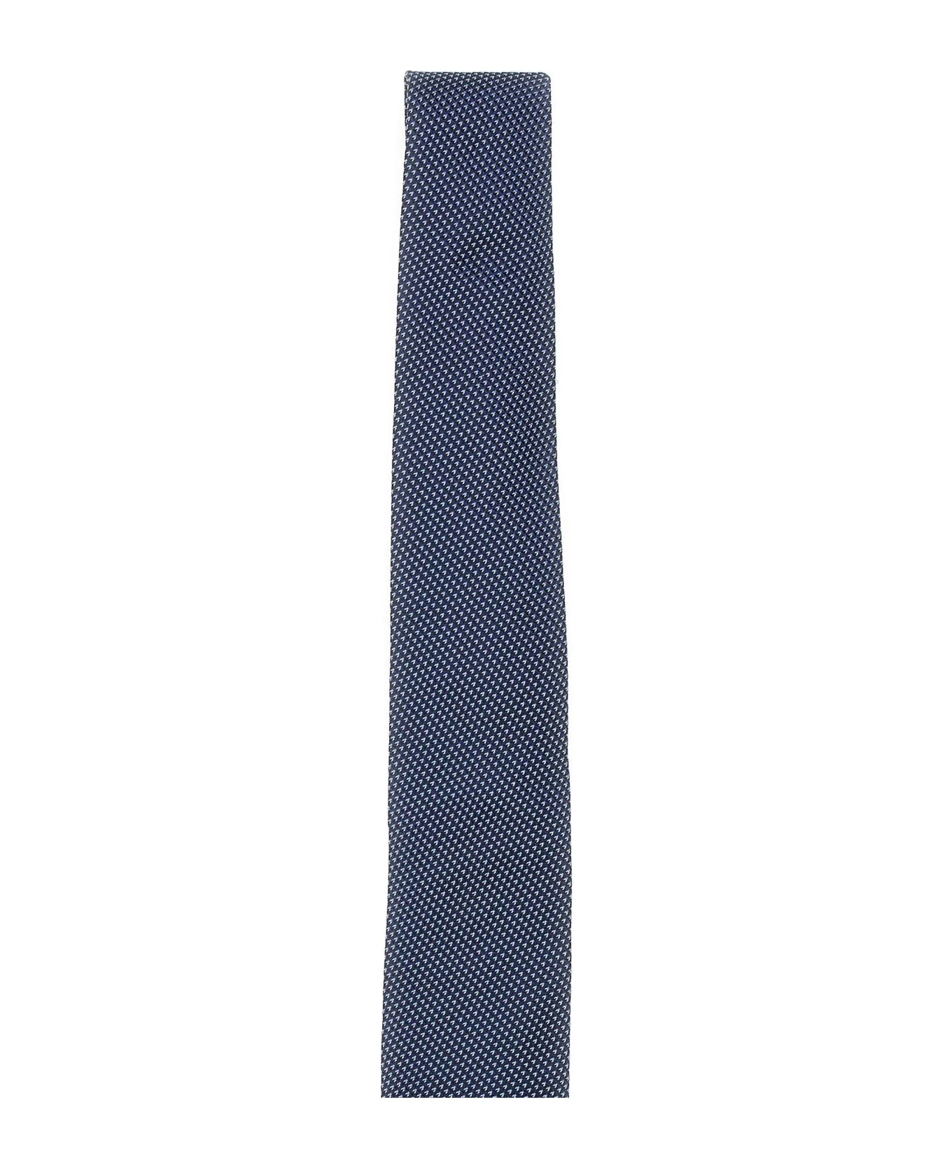 Boss “H-Tie” silk jacquard men’s tie, blue on micro dots pattern. Length: 148. 0cm. Width: 7. 5cm.