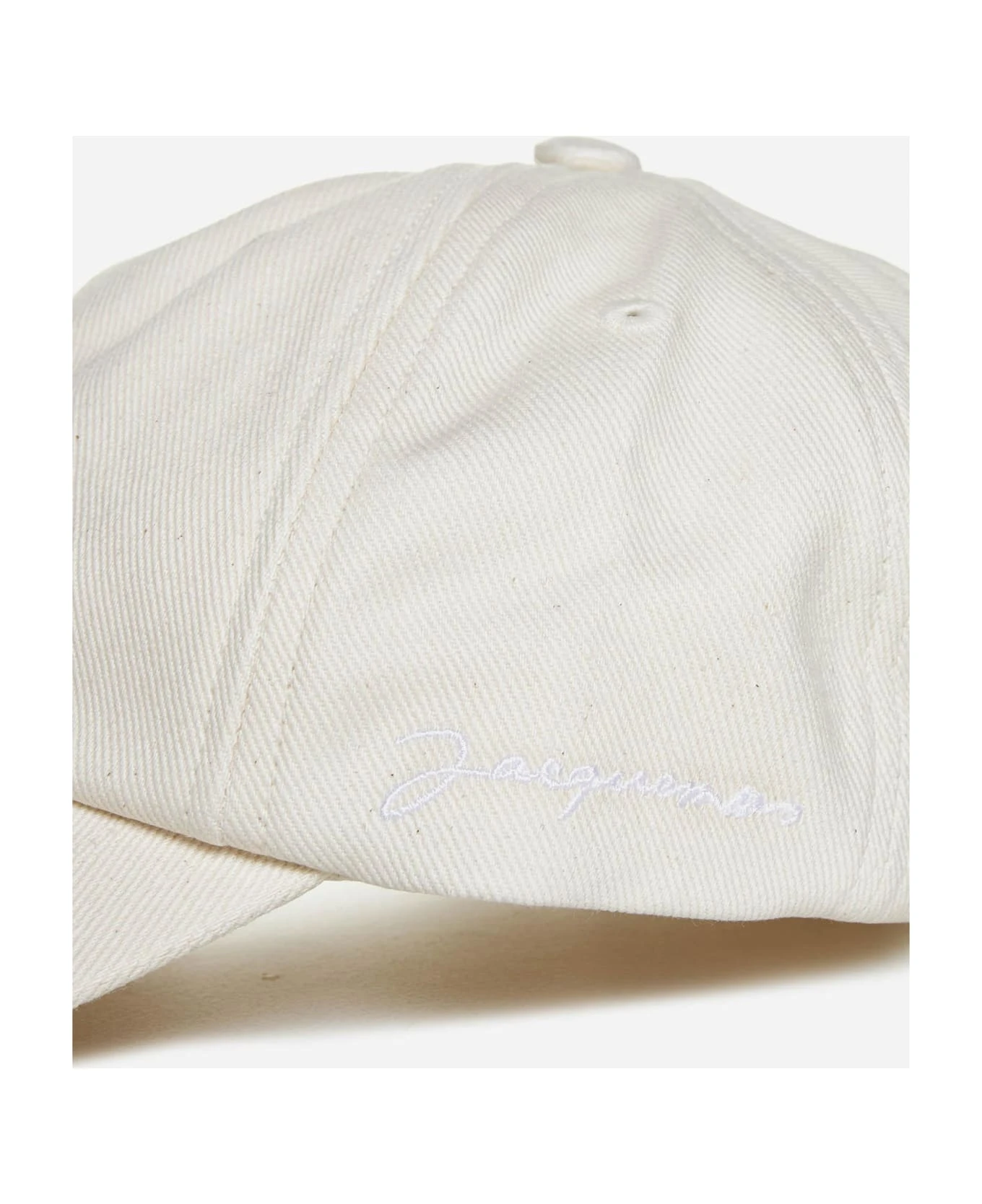 La Casquette Jacquemus off-white cotton baseball cap featuring lettering logo embroidered on the side and adjustable back strap.