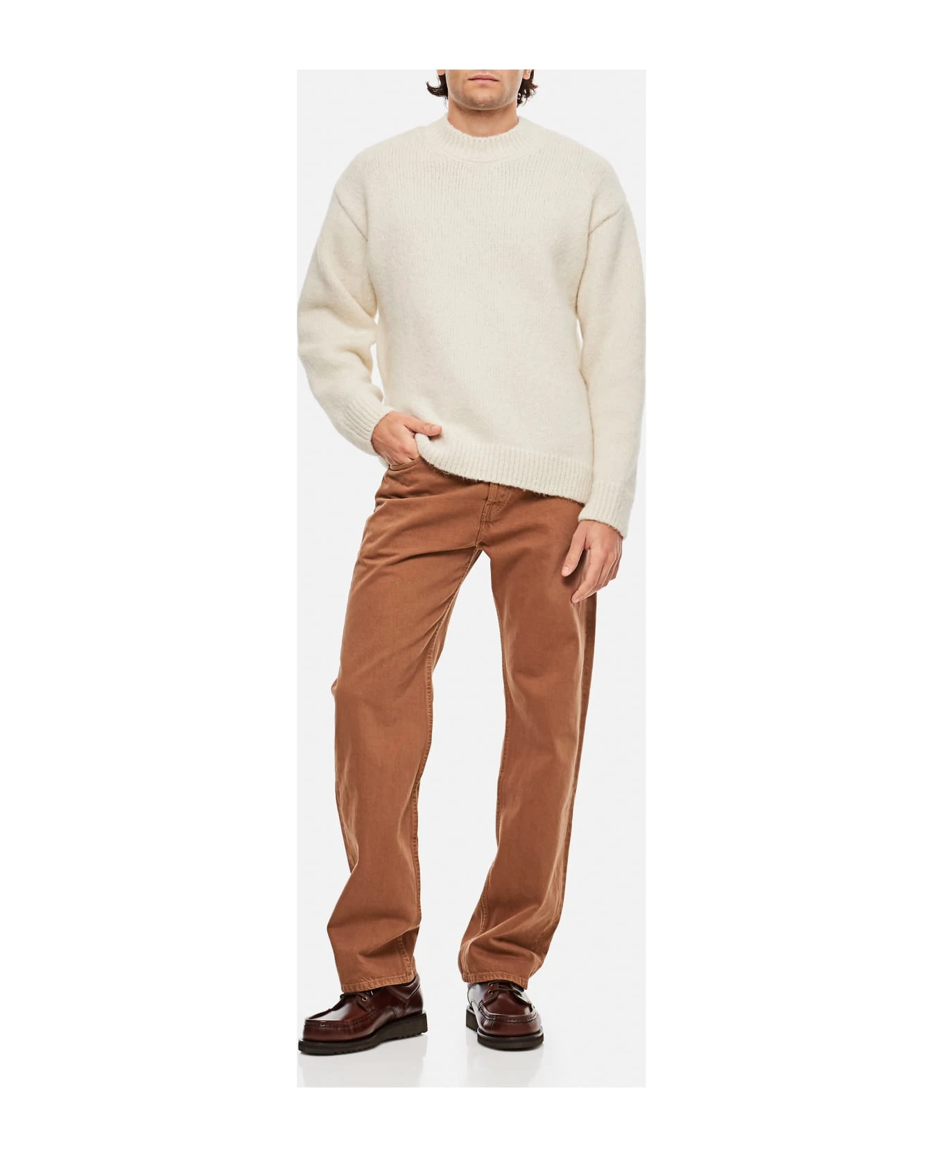 Mid-rise. Belt loops. Hidden zip closure with engraved button. Metal rivets. Five pockets. Straight fit. Color: beige.