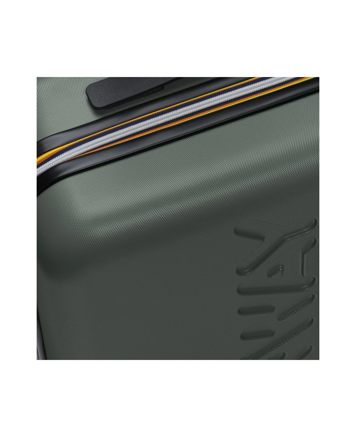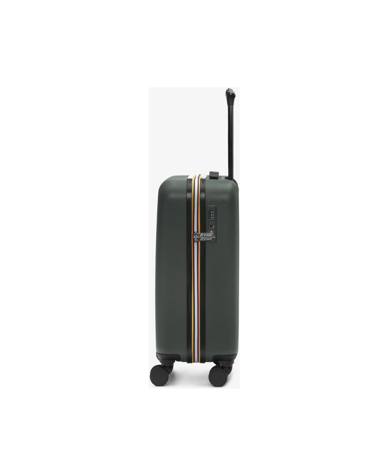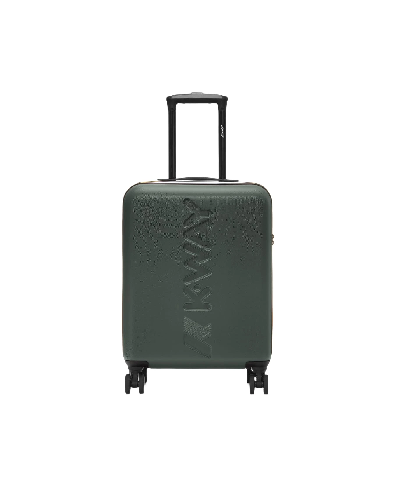 Unisex polycarbonate trolley with double zip closure and combination lock. It features a large front logo and telescopic handle.