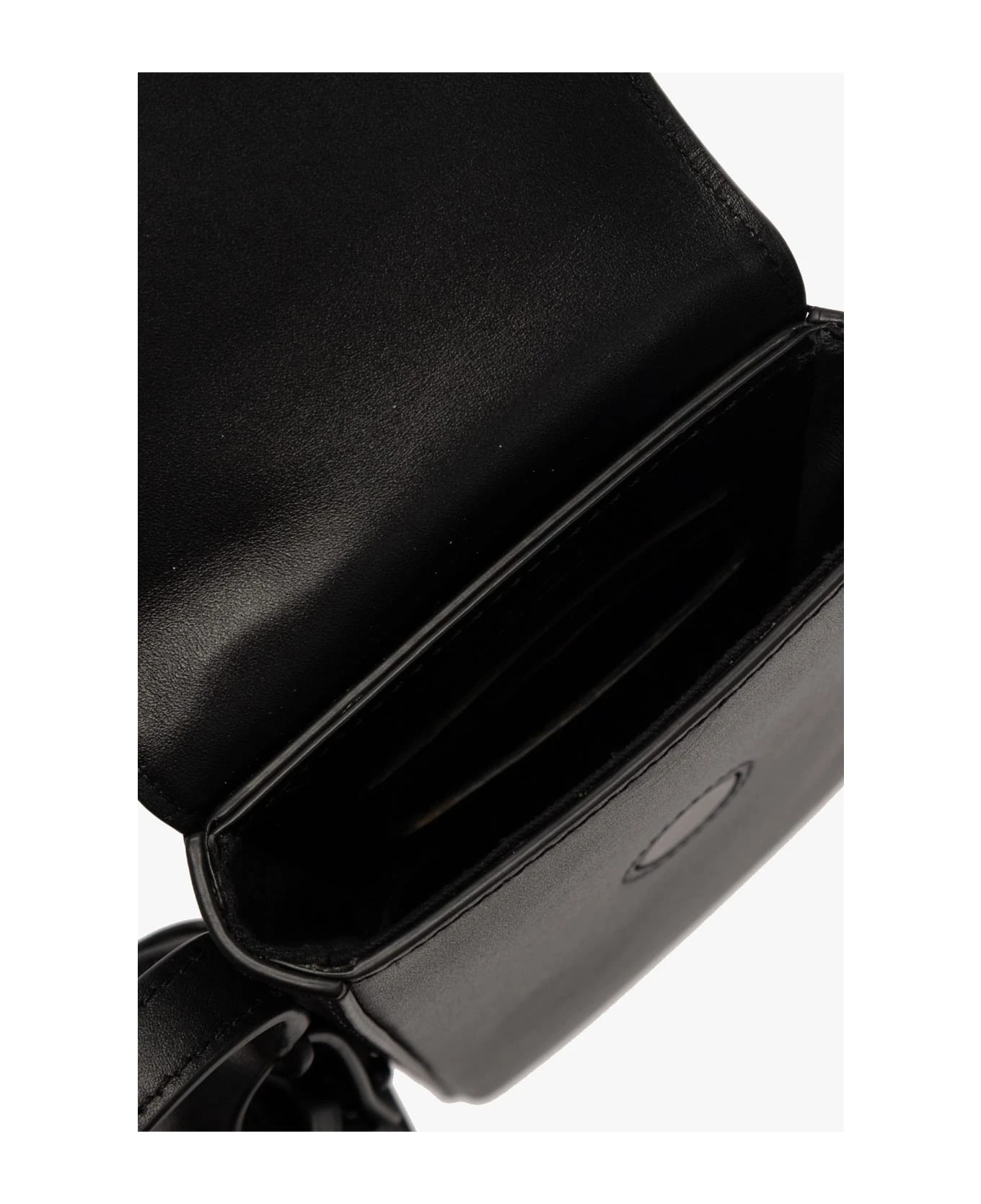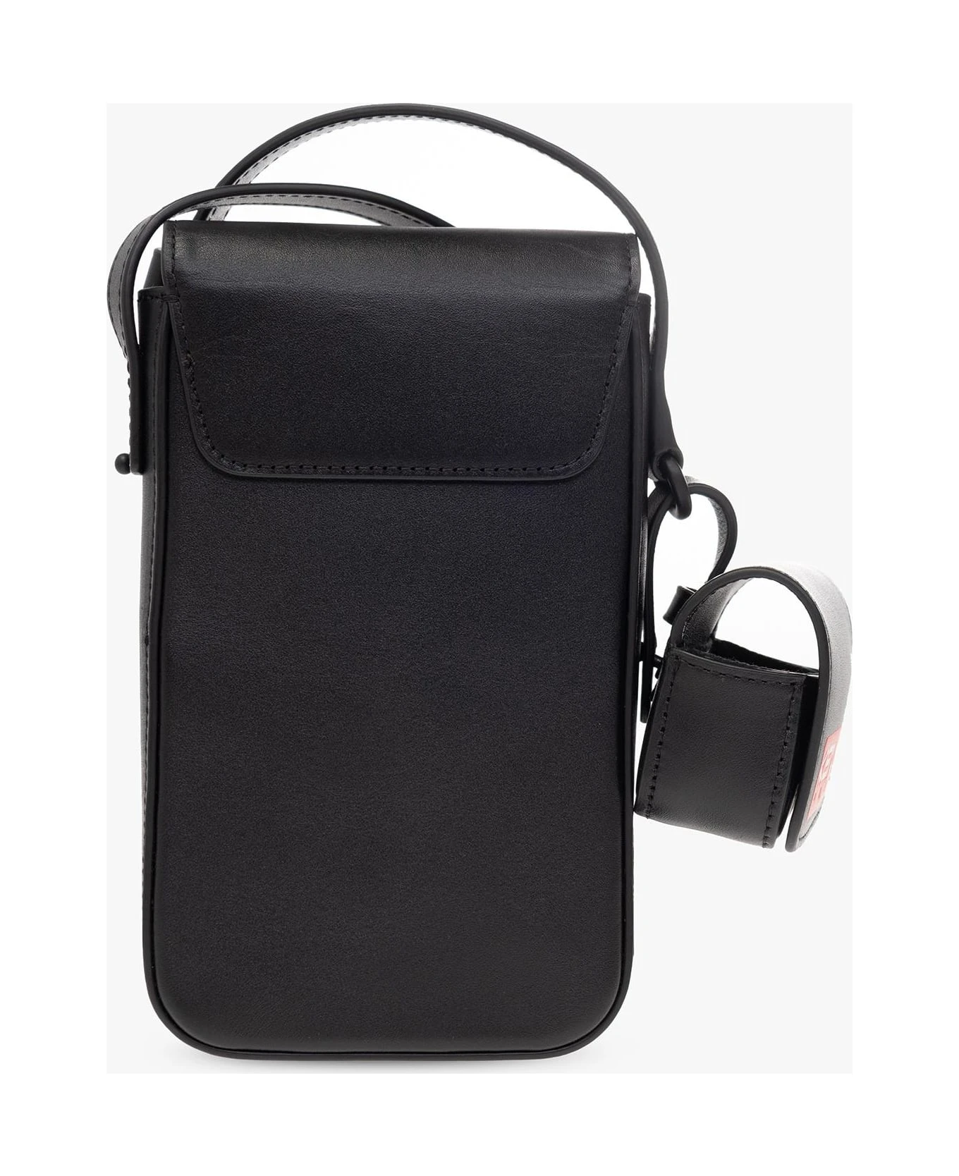 Black phone pouch from Kenzo. Made of leather, this item is complete with a magnetic closure, red, white and green logo print, adjustable strap, detachable AirPods case and one internal compartment with three card slots.