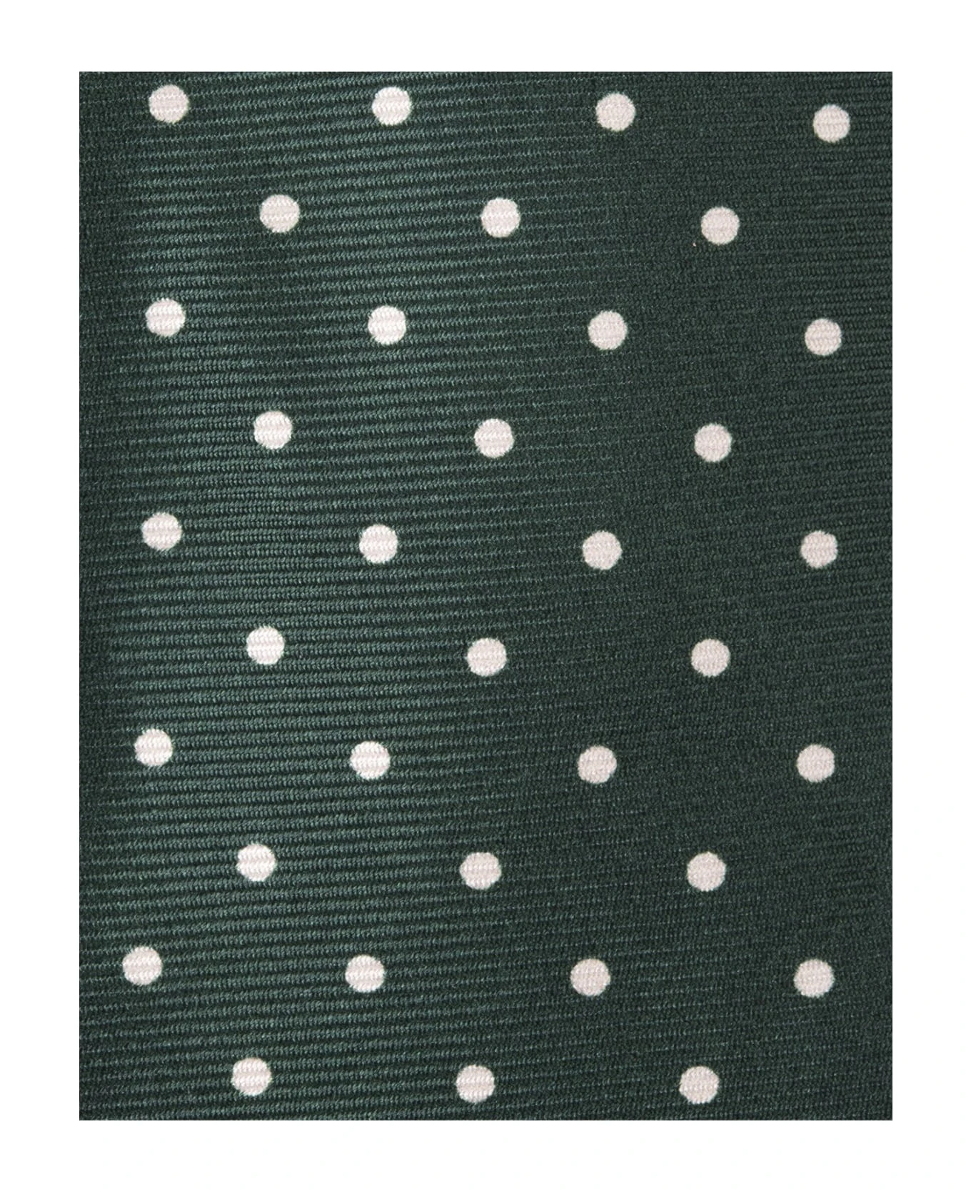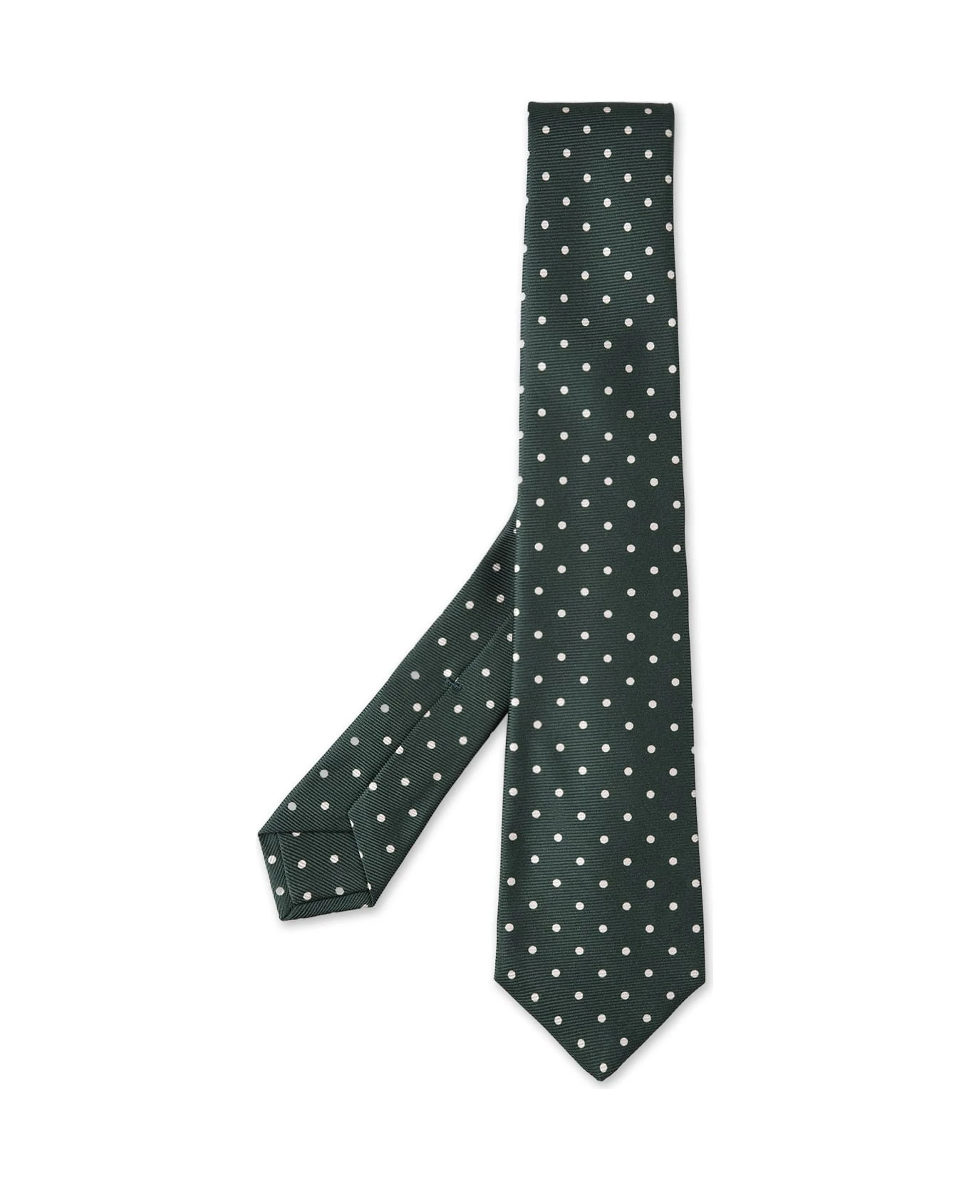 Kiton men’s tie made of fine green silk with all-over contrasting micro polka dot pattern.