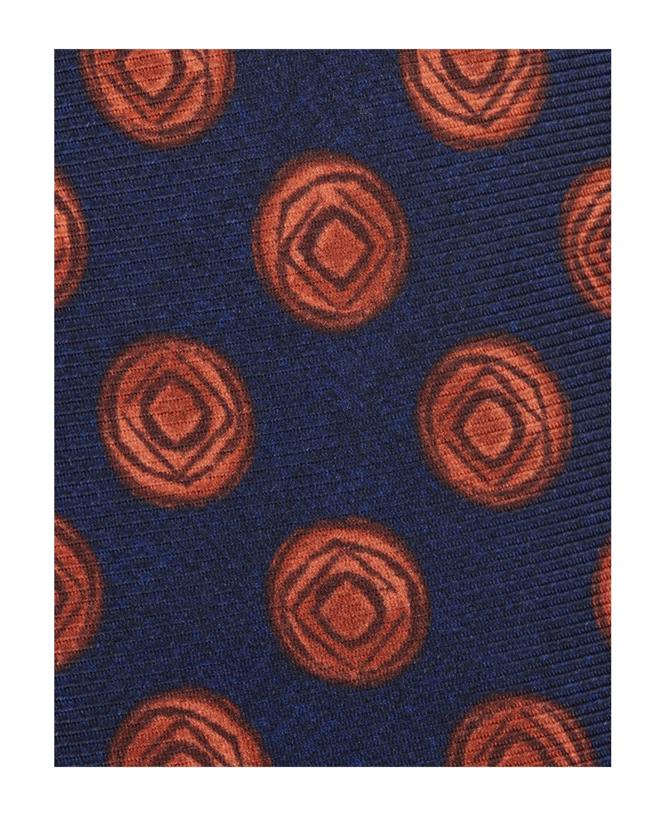 Refined Kiton tie for men made of fine navy blue silk with orange graphic pattern.