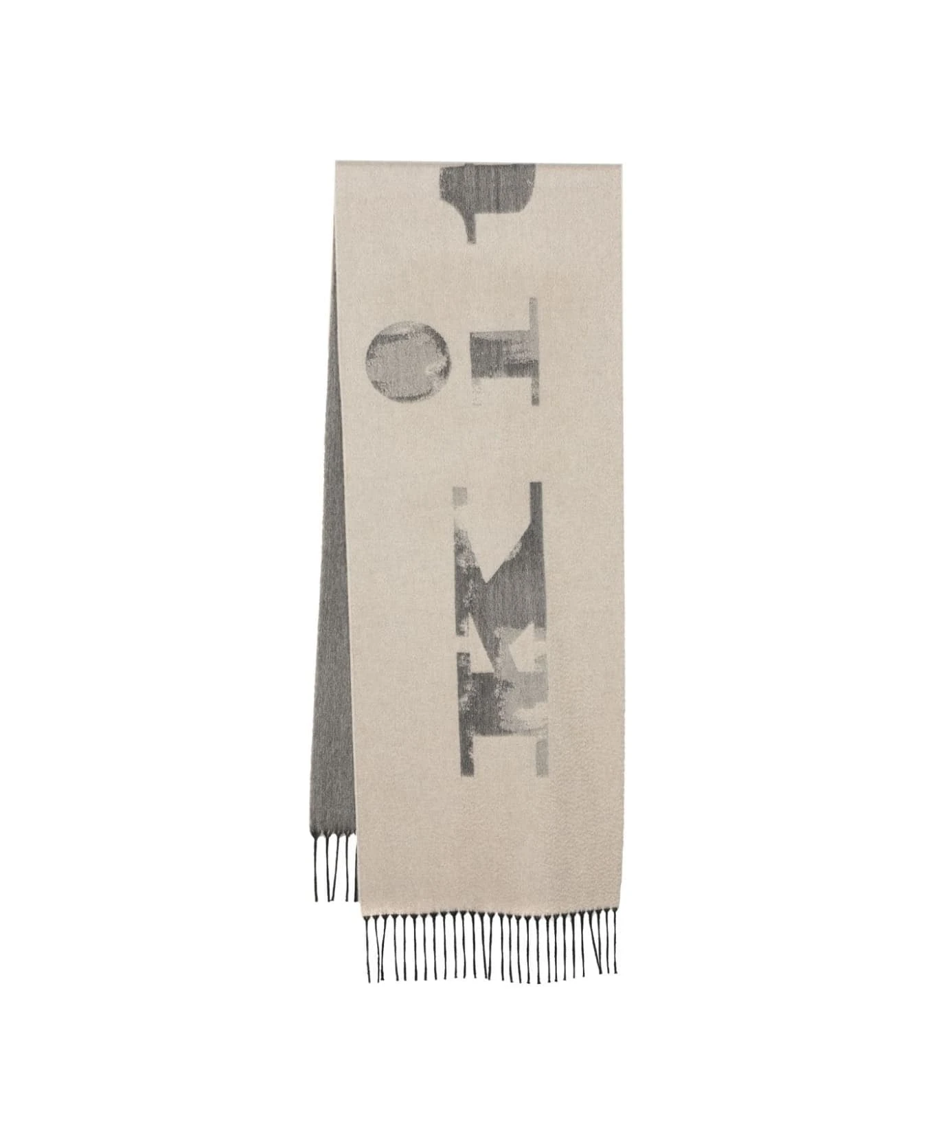 Kiton scarf made of fine sand-coloured wool and cashmere blend yarn with contrasting inlaid logo. Model finished with fringes on the ends.
