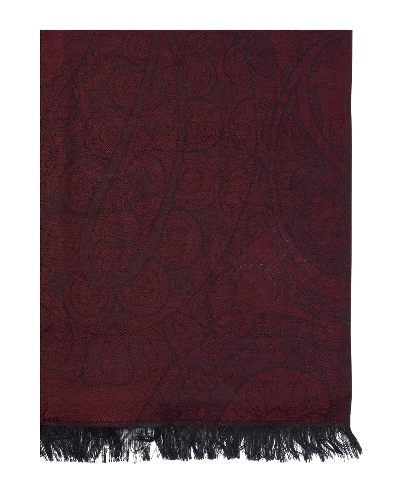 This burgundy scarf comes in cashmere and silk and features a cashmere macro-pattern with contrasting piping. Measurements: 70 x 180 cm.