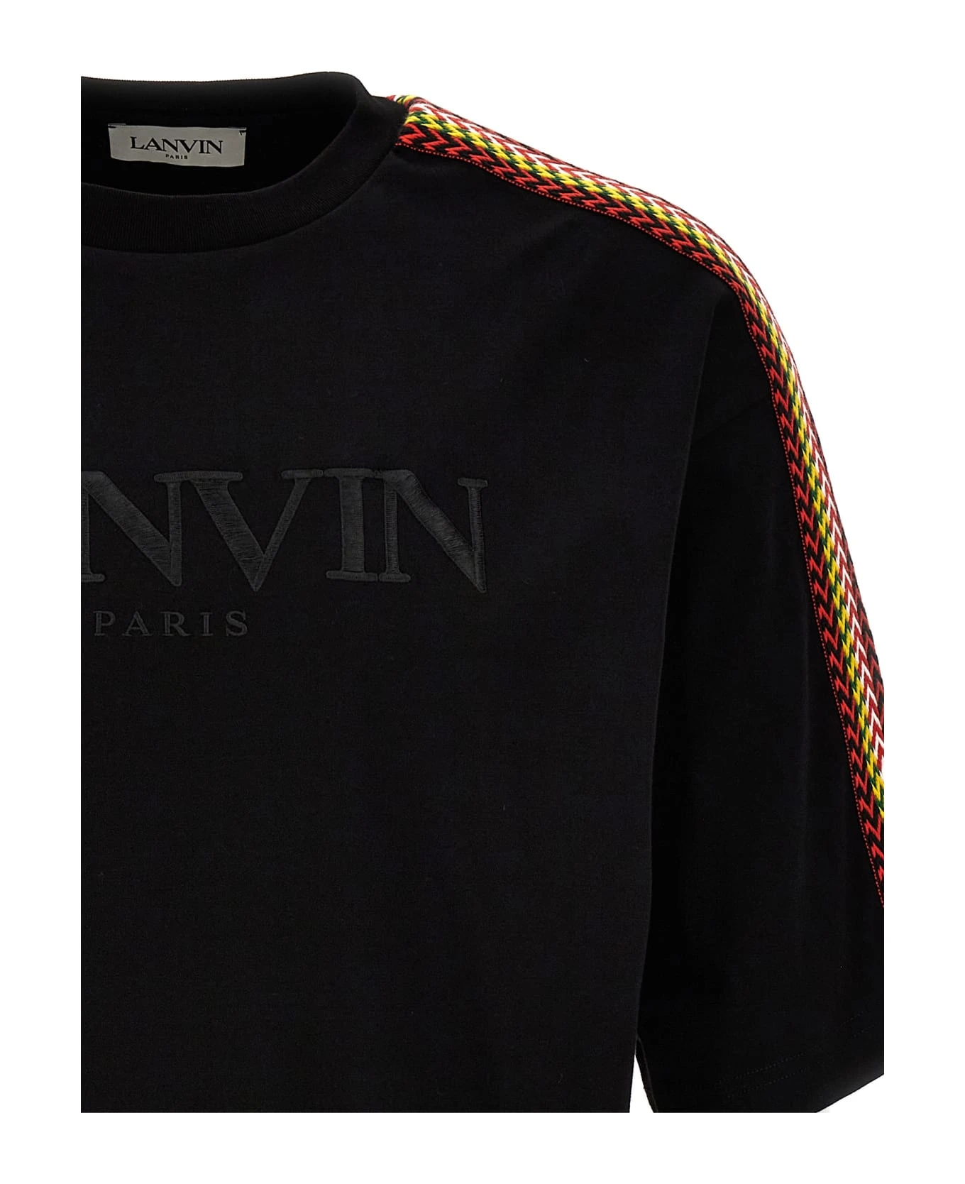 Cotton, crewneck t-shirt with contrasting intertwined bands and tone-on-tone logo embroidery.