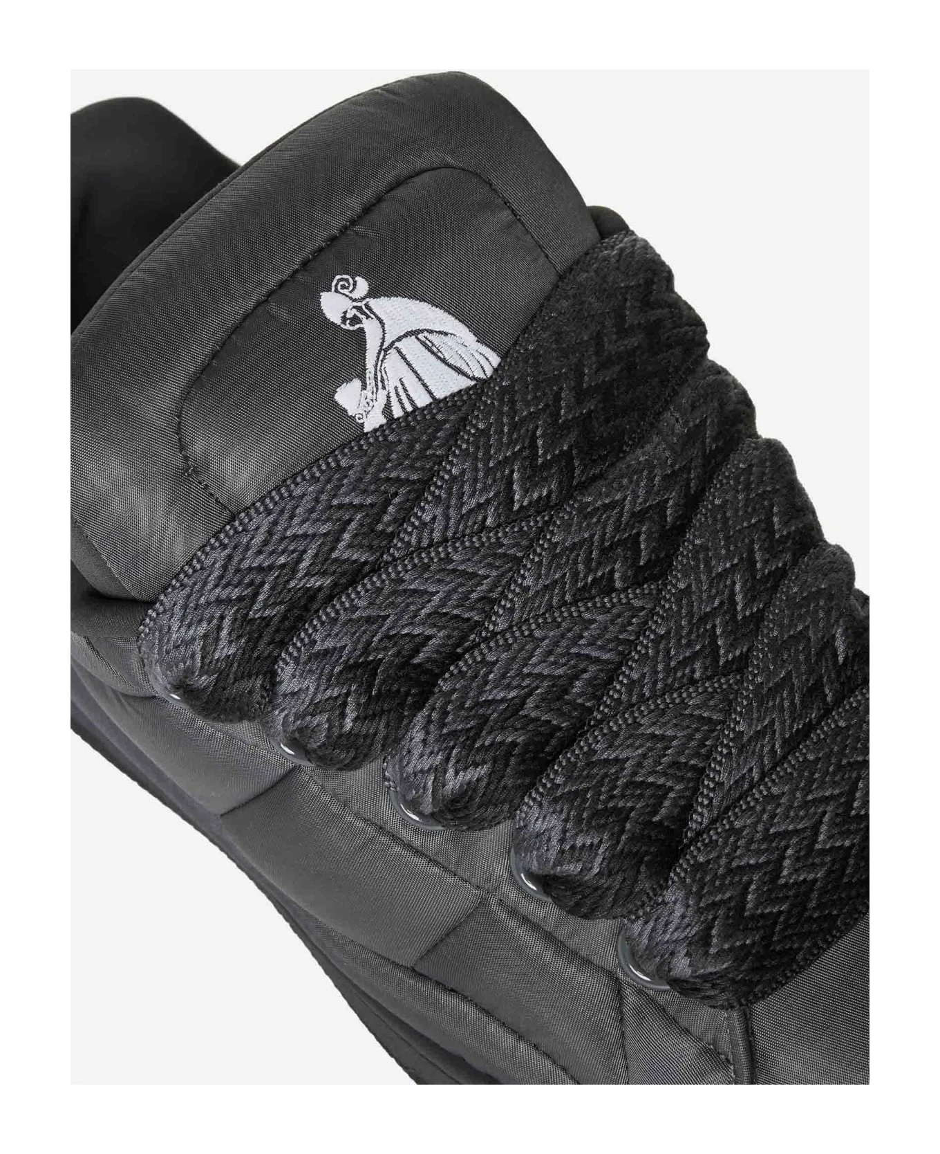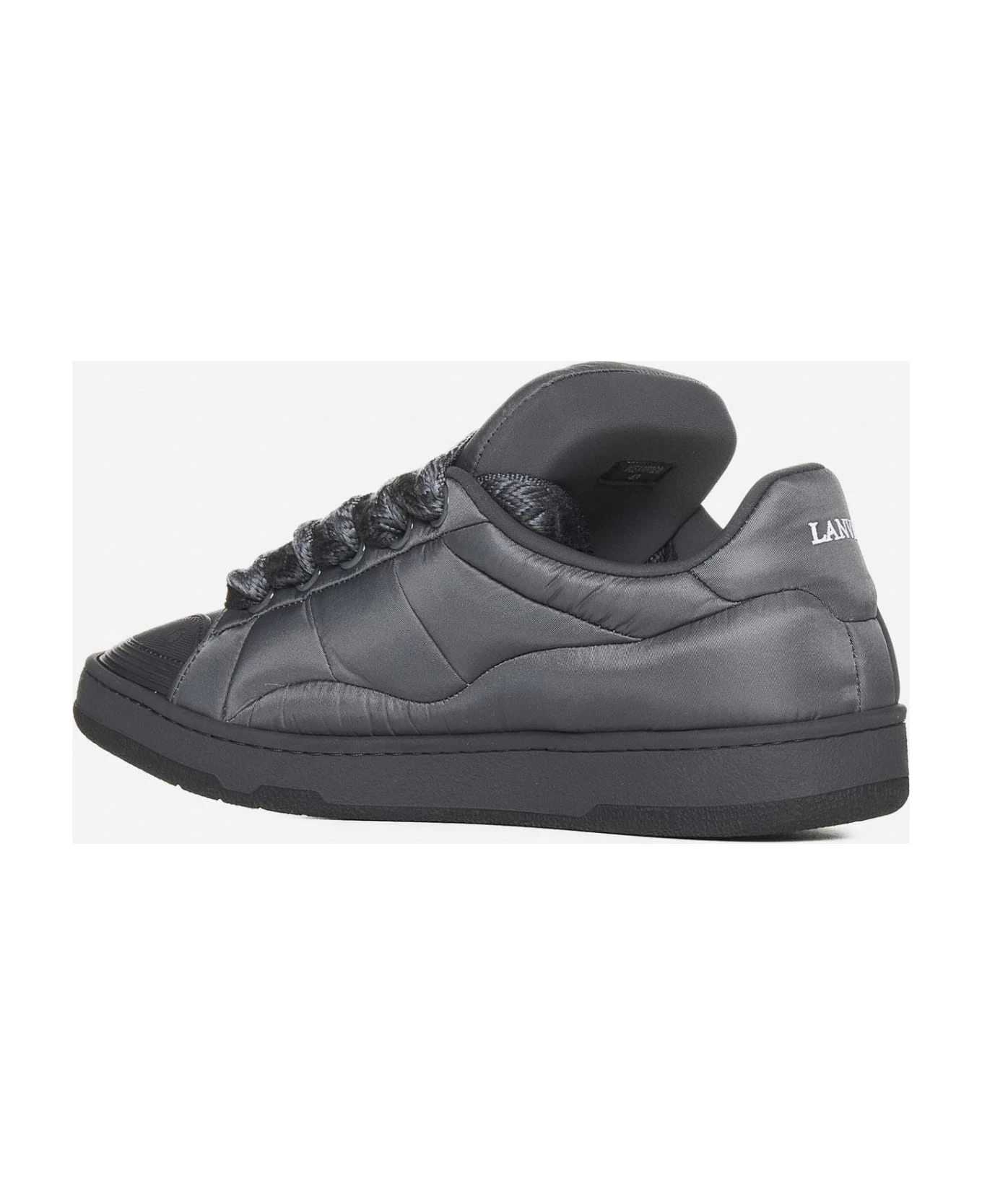 Lanvin’s Curb XL low-top sneakers in quilted dark grey nylon featuring a rounded toe, tone-on-tone Curb laces, logo embroidered on the padded tongue, logo lettering on the heel patch and rubber sole.