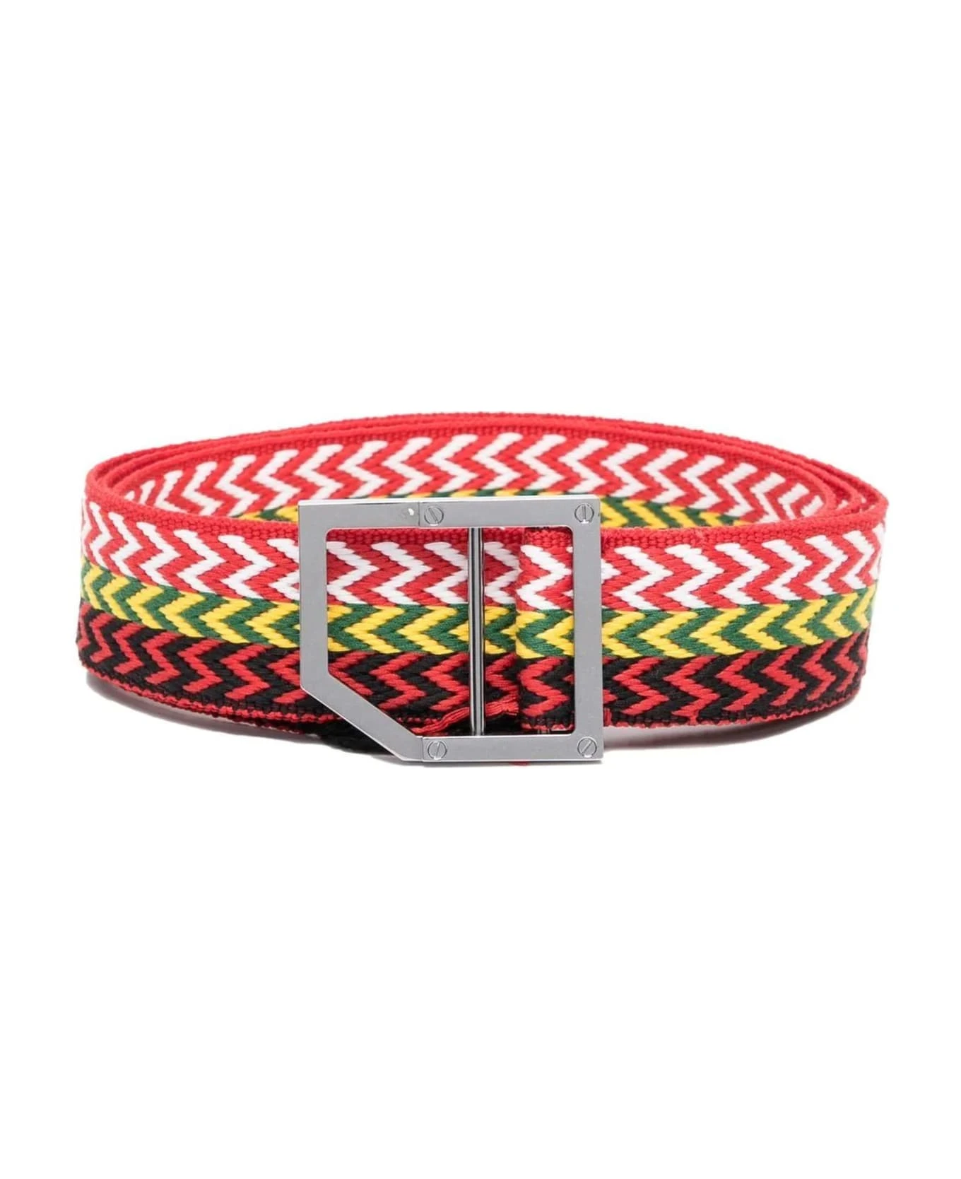 Multicolor Curb braided belt, chevron motif knit, braided design, fringed hem and side buckle closure, width 3. 5 cm