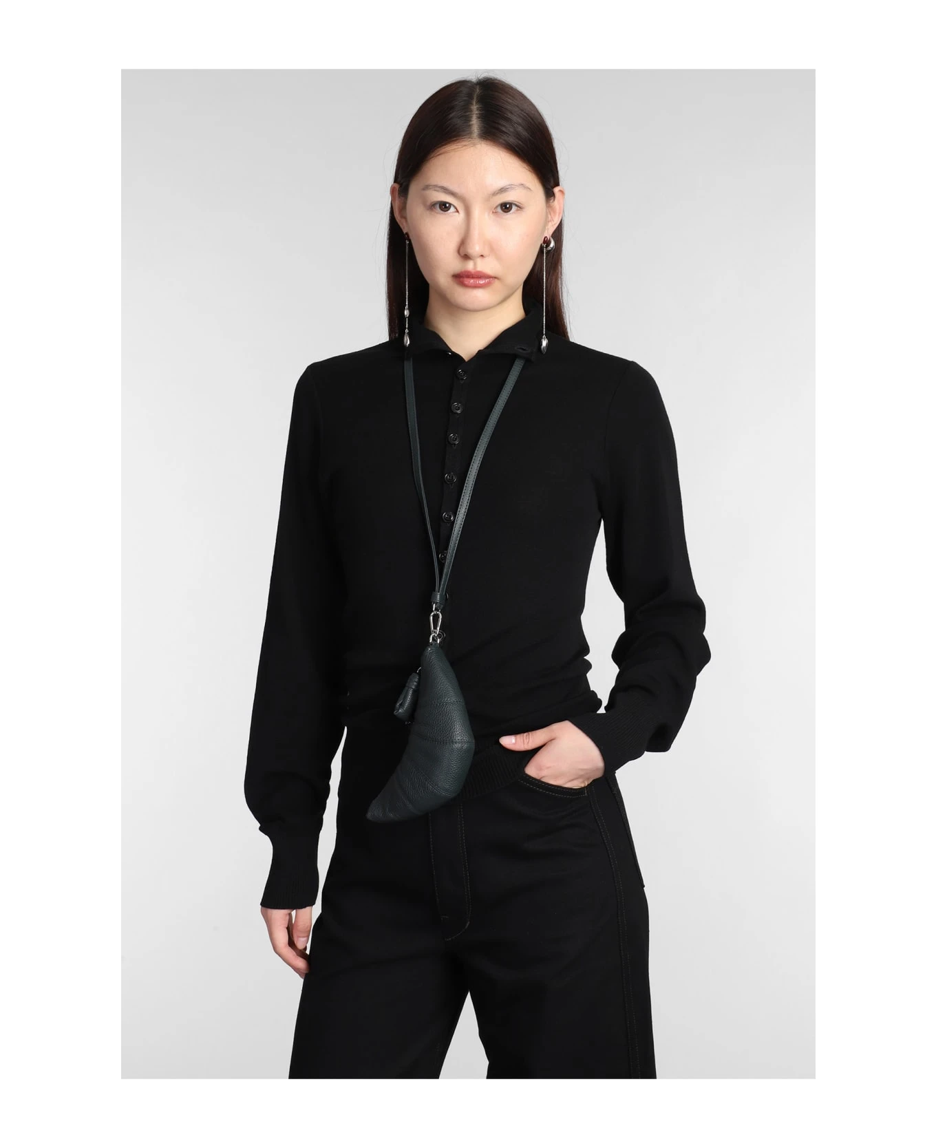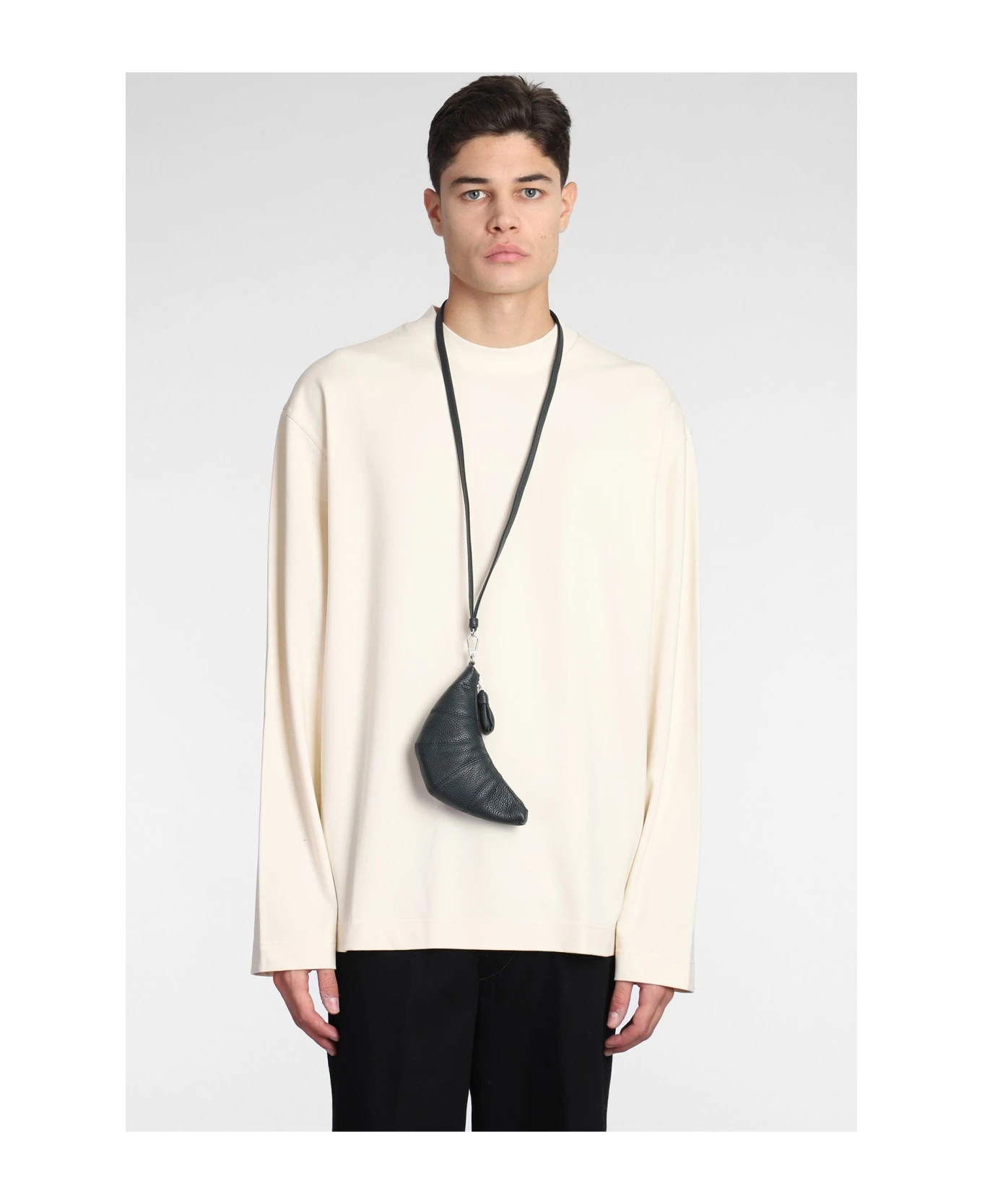 Croissant coin Shoulder bag in green leather, leather pendan, silver hardware, stitching detail, zip clousure, 100% leather, Made in Spain, Height 80 mm, Width 190 mm