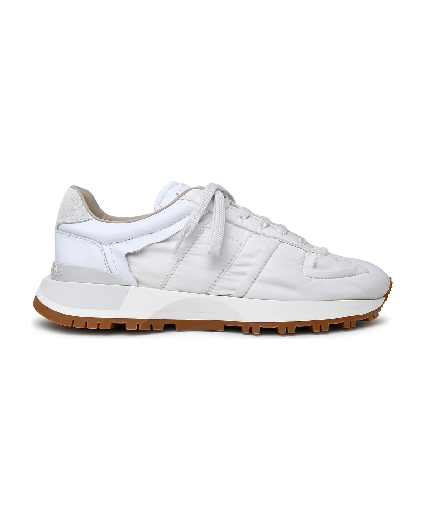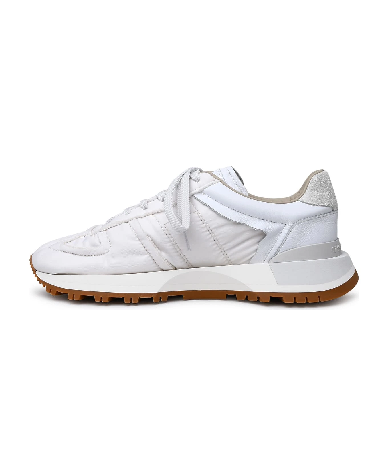 Logo tag on the tongue, mesh and leather details, the iconic stitching point at the back, layered rubber sole with numeric logo at the back.