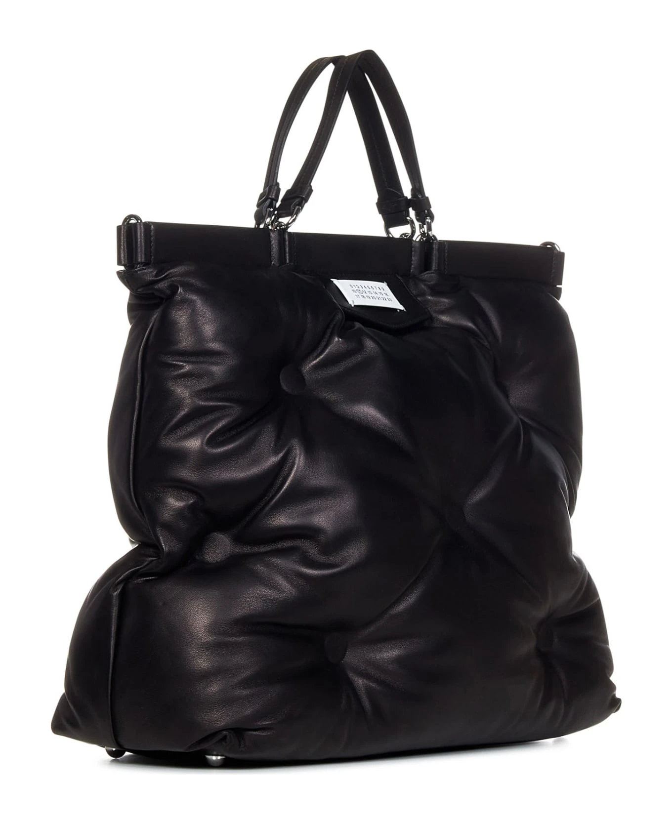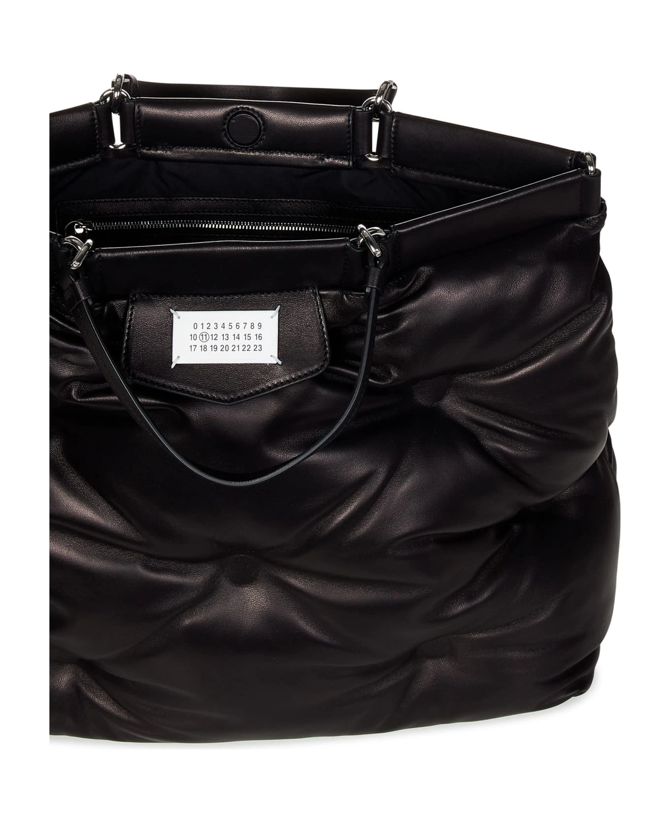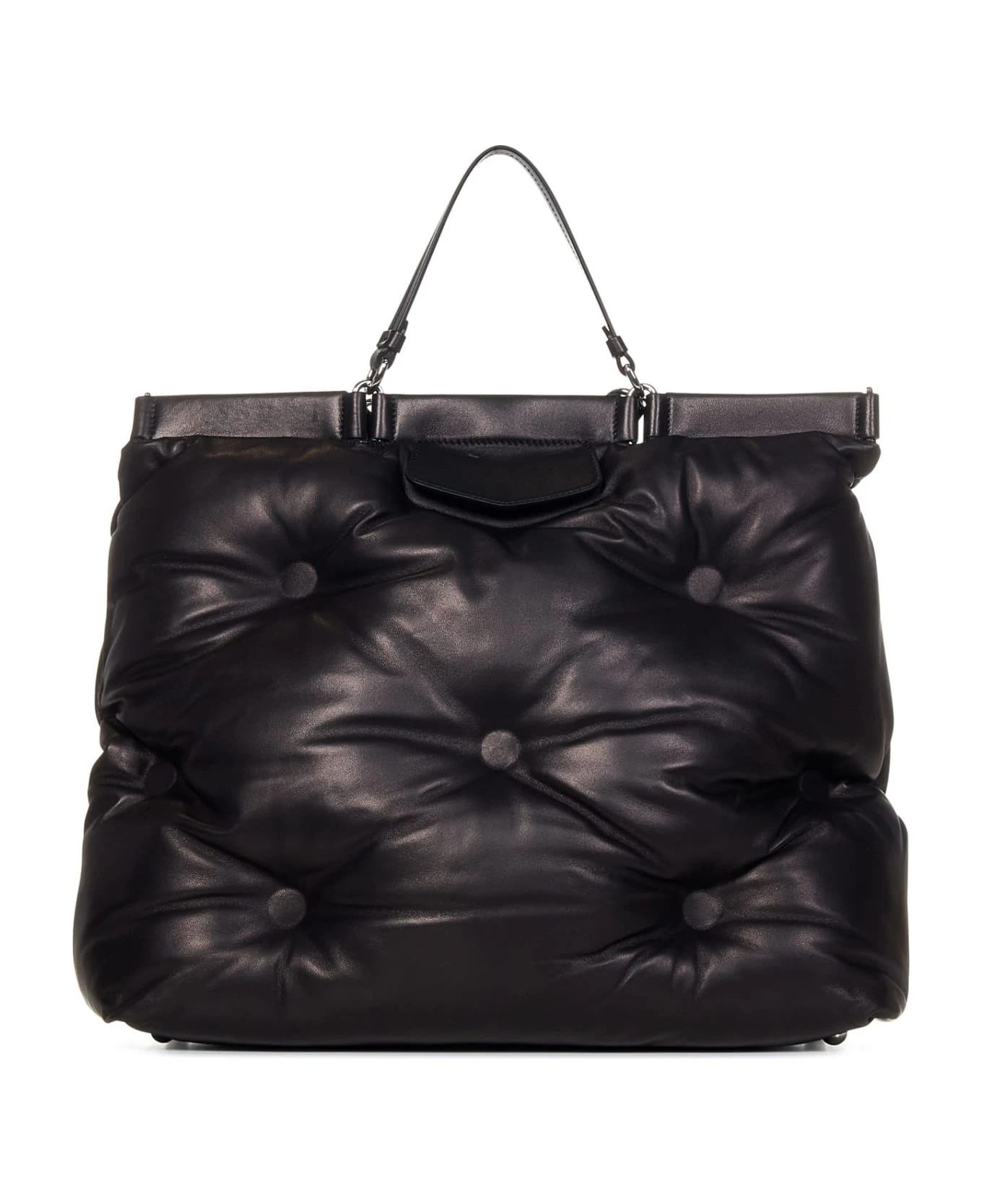- Silver-toned shiny metal hardware