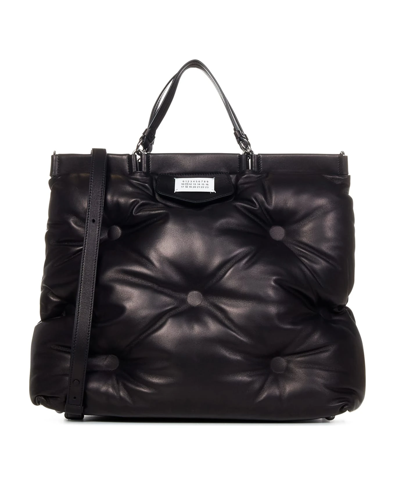 - Leather top handles; Adjustable and removable leather shoulder strap
