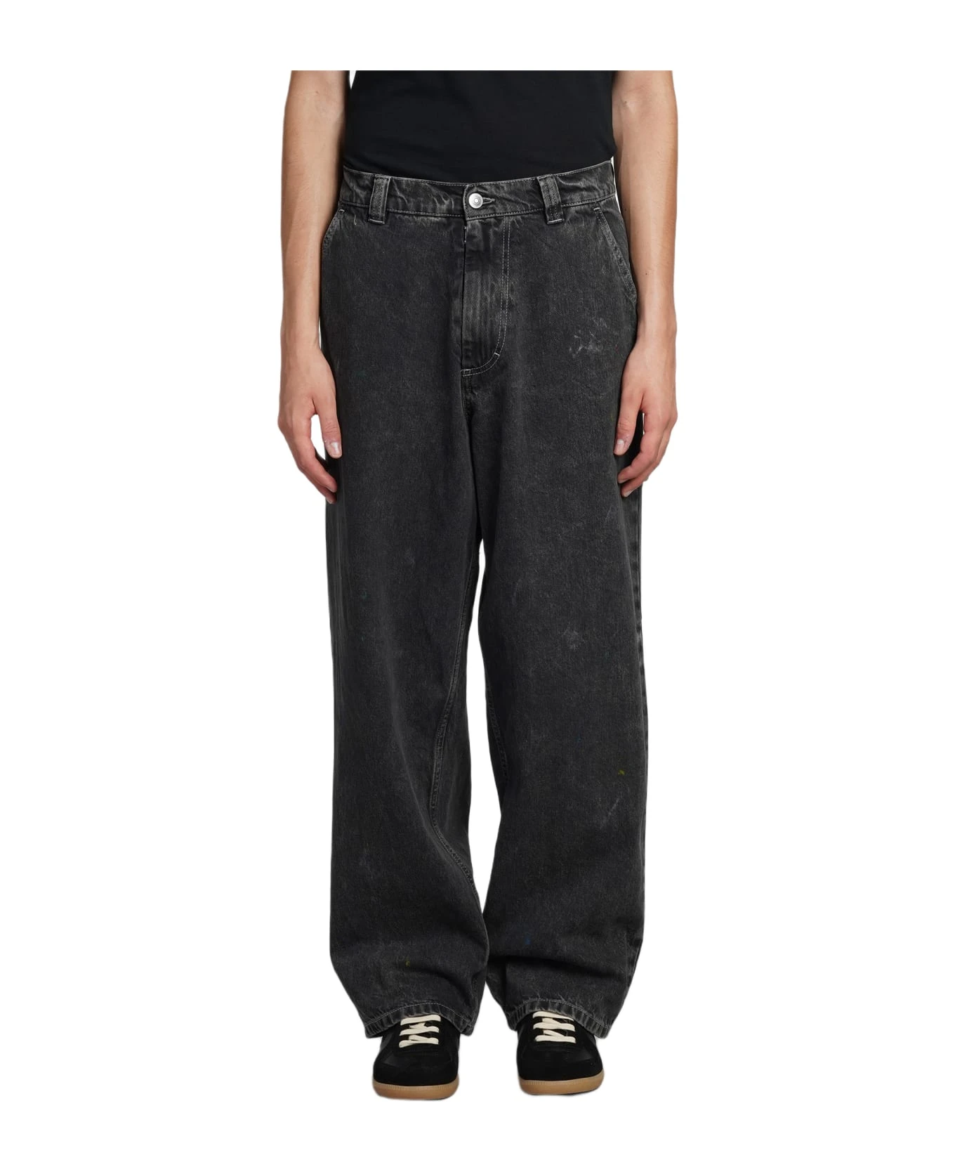 Jeans in black denim, button and zip closure, waist belt loops, loose fit, four pockets, 100% cotton, Made in Italy, Model is 1. 83 and wears size 31
